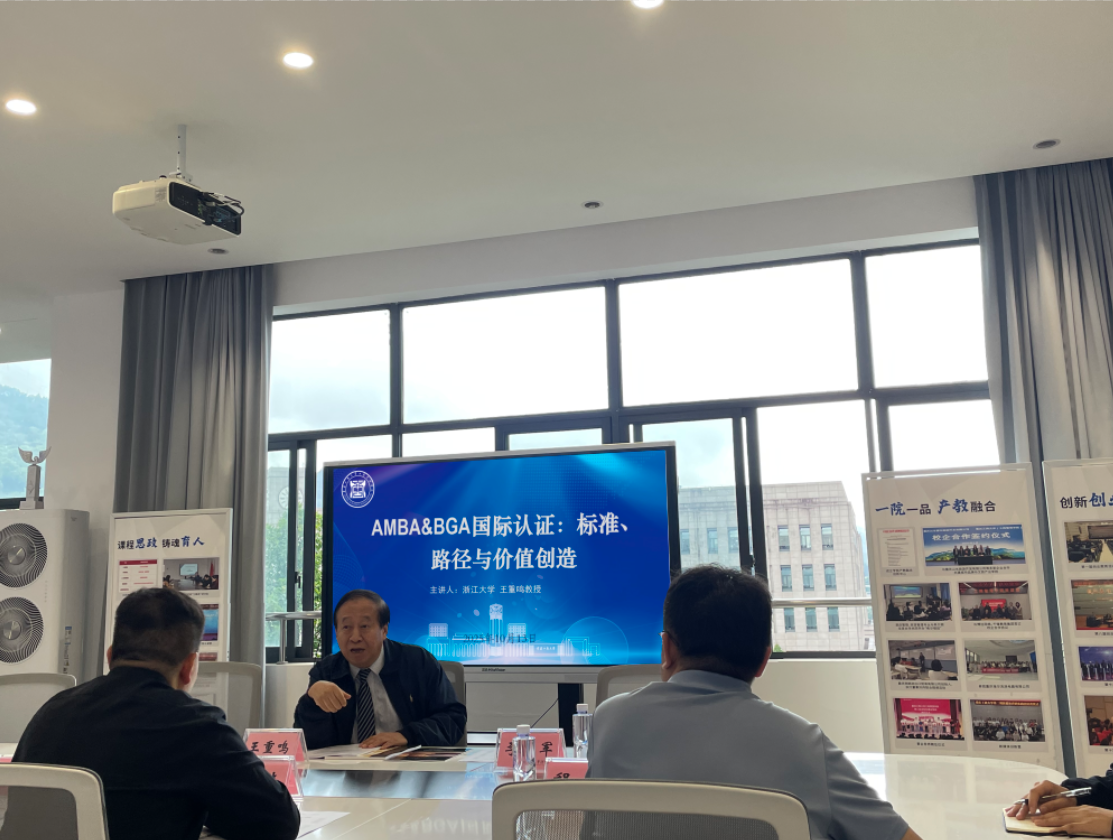 10月13日,浙江大学资深教授、AMBA&BGA国际认证中国区总协调人王重鸣应我院邀请,莅临明德楼3019会议厅,作了题为《AMBA&BGA国际认证:标准、路径与价值创造》的专题讲座。学院党委书记陈亚惠、院长陈伟、党委副书记程亚、副院长熊艾伦以及各系主任和骨干教师悉数到场聆听。