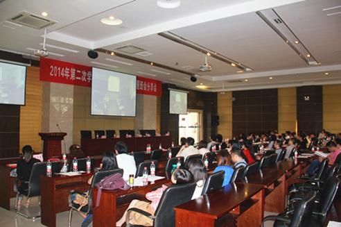 学工部部长罗勇主持了分享会,学校党委书记李春茹、党委副书记、纪委书记周航亲临会场,我院党总支副书记尹建平、学团办主任卓志宏与其他学院分管学生工作的党总支书记或副书记、全体辅导员等,一起观看了“我校首届辅导员主题班会比赛集萃”以及比赛第一名获得者邢月军老师的《学弟子规,做感恩人》班会现场视频。