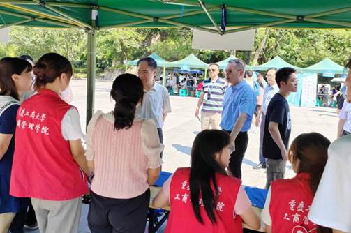 工商管理学院党委书记、副院长陈亚惠,党委副书记、院长杨柏,副院长陈伟多次到迎新现场了解迎新进展,并对志愿者及工作人员予以亲切问候。