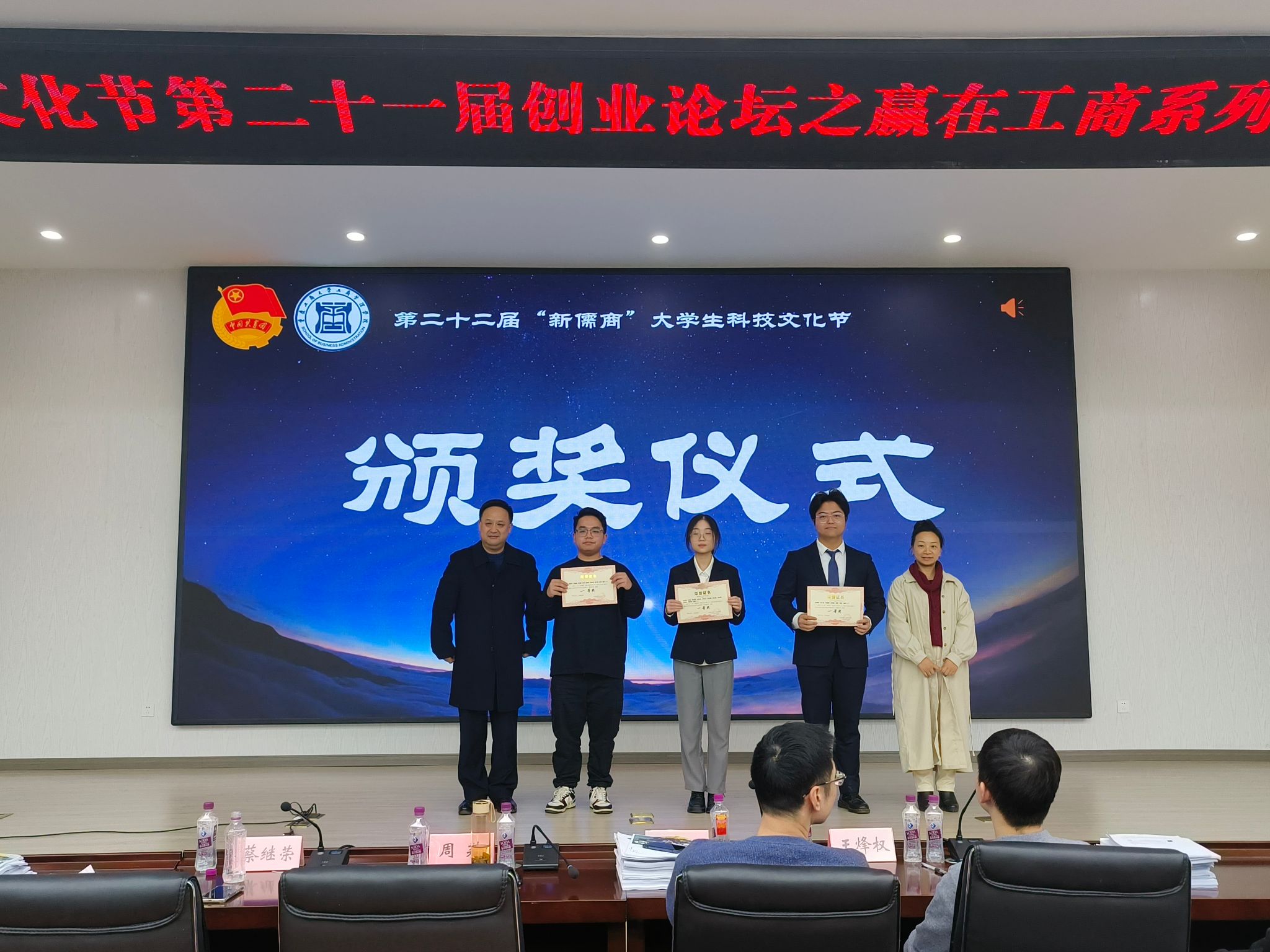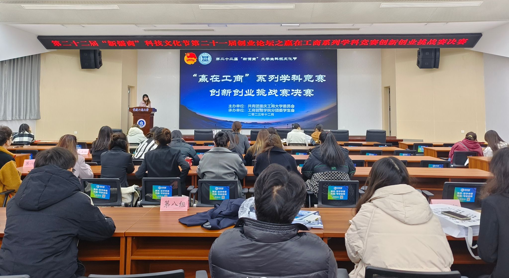 为深化党的二十大创新驱动发展战略的重要指导思想,激发青年学生的创新创业潜能,培养有创新意识、创业能力和创新精神的青年人才。12月8日下午,重庆工商大学二十二届“新儒商”大学生科技文化节之第二十一届创业论坛—“赢在工商”创新创业挑战赛于明德楼3019举行。本次活动由校团委主办,44118太阳成tyc城集团承办,比赛邀请44118太阳成tyc城集团国际商务系蔡继荣教授、人力资源管理系周莉教授、熊雪原博士及市场营销系王烽权博士担任评委。