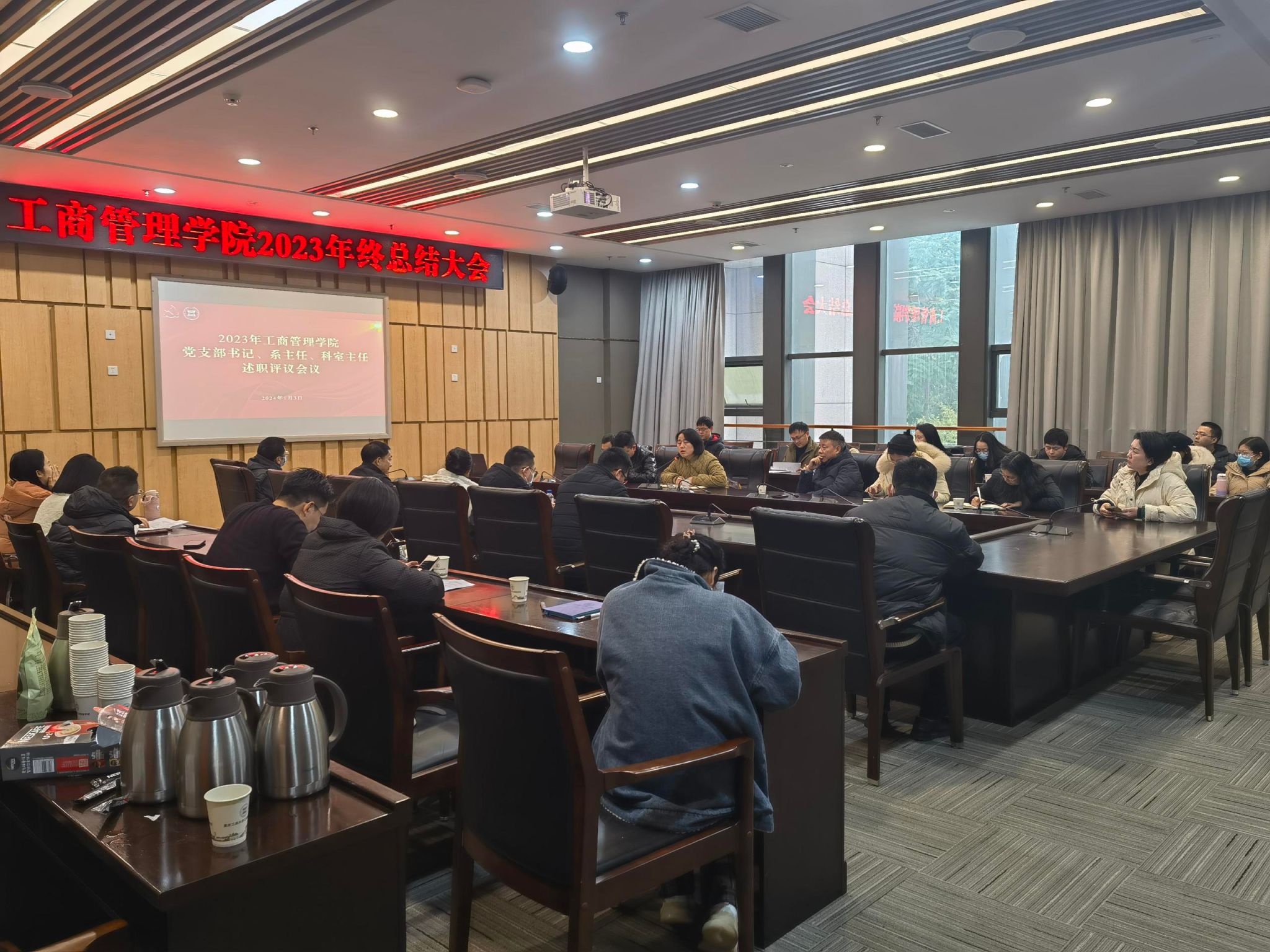 为进一步加强学院党支部书记、系主任、科室主任等干部队伍建设,不断提升业务水平和能力,推动学院整体发展,1月3日下午,在图书馆第五会议室召开44118太阳成tyc城集团2023年终总结大会,学院全体领导班子、党支部书记、系部主任、科室主任等参加了此次会议,学校党委常委、副校长李国军莅临现场调研指导会议,会议由学院党委书记、副院长陈亚惠主持。