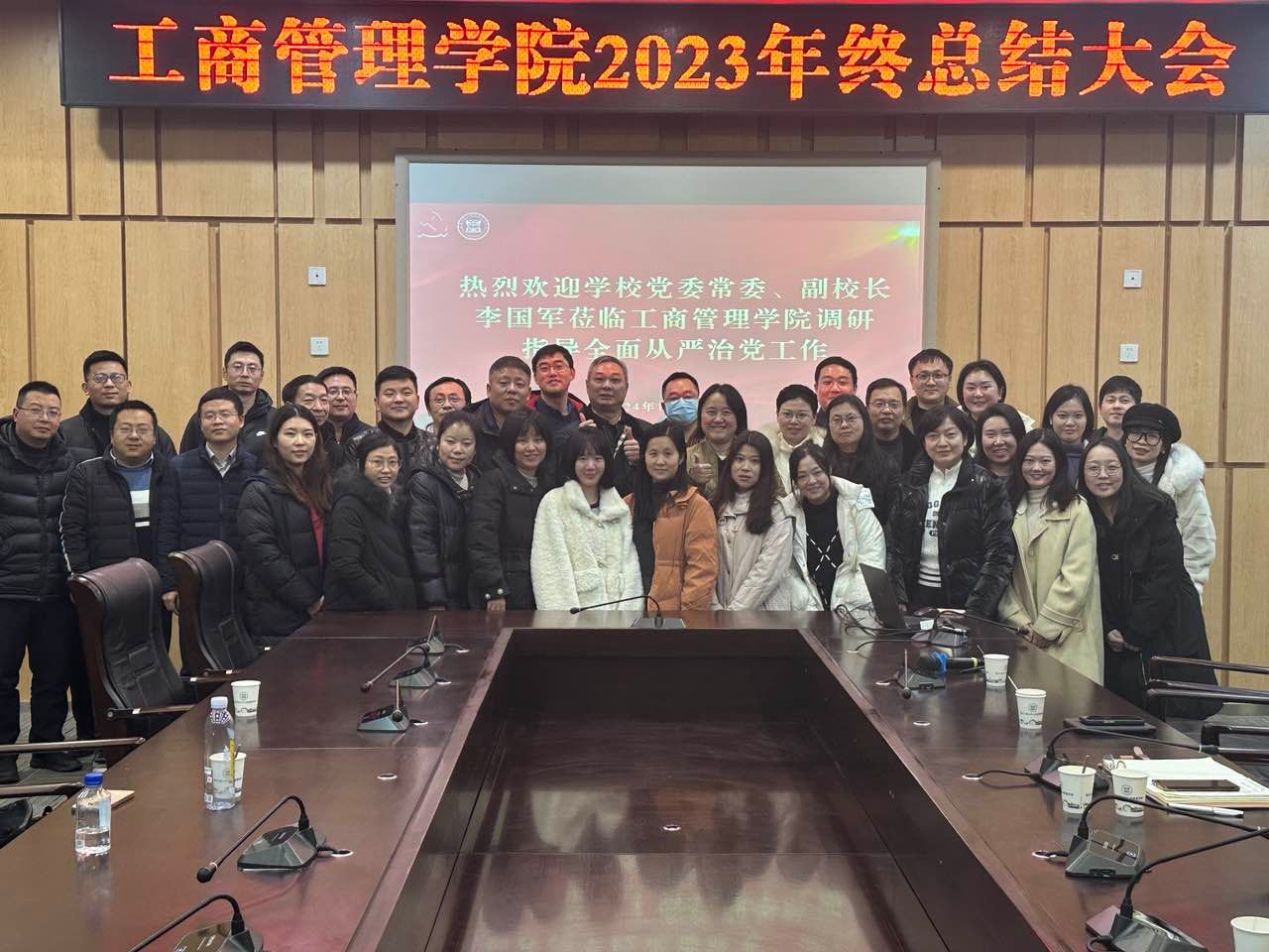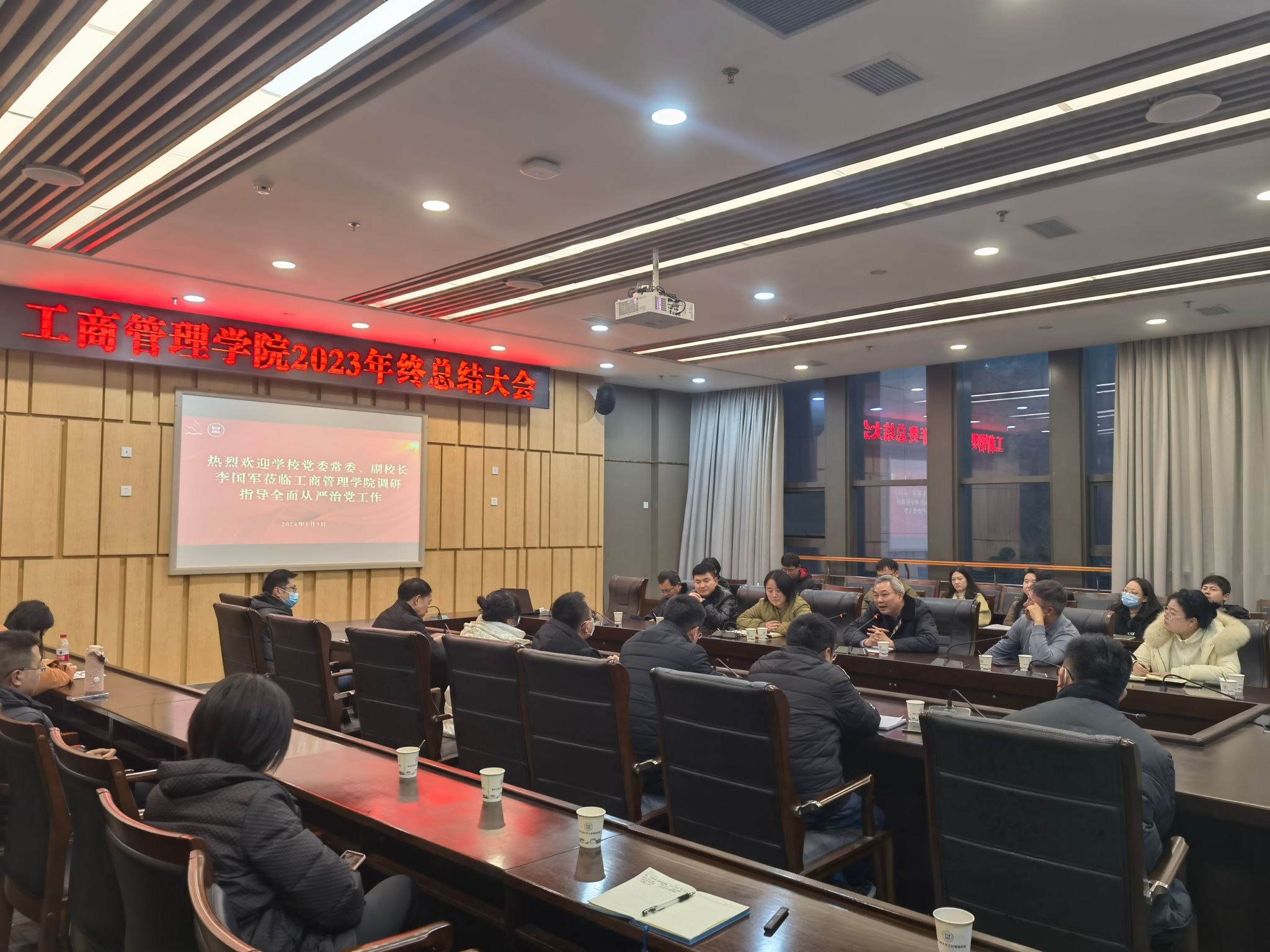 李国军副校长最后做总结讲话。他指出学院去年一年的各项工作有效有序的运转,有亮点,有提升,体现了领导班子的战斗力与责任担当。希望学院在进一步提高政治站位,解放思想,勇于创新,在顶层设计、人才培养、科学研究、学科发展等方面继续努力,在新的一年取得更大的成绩和收获。