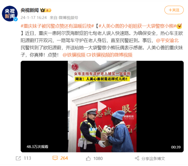 央视新闻、重庆发布、平安渝北等多家媒体报道我校2022级MBA学生快速路上守护七旬患阿尔兹海默症老人