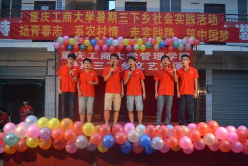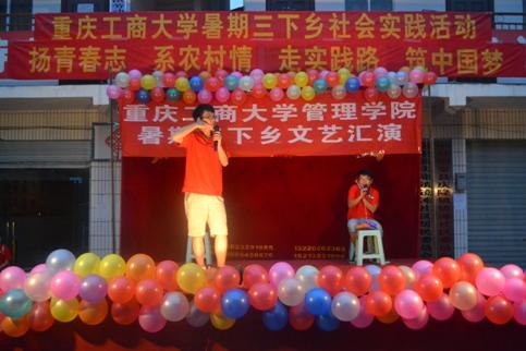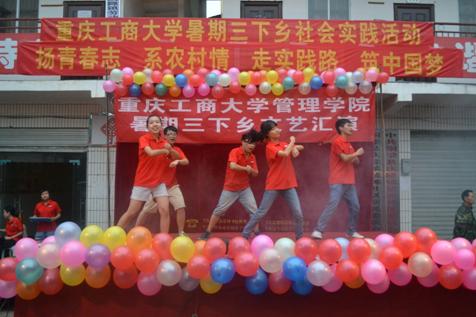 这是实践服务团在铜梁县庆隆镇文艺汇演所体现出的等式。7月18日晚7点,管理学院“三下乡”大学生教育帮扶实践服务团文艺汇报表演在庆隆镇社区广场顺利举行。