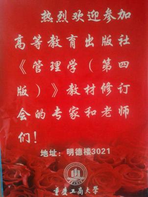 2013年10月12日,重庆工商大学迎来在此参加“十一五”国家级规划教材、面向21世纪课程教材《管理学(第四版)》教材修订研讨会的各位专家。这是我校在推进转型升位过程中举行的一次对建设《管理学》精品课程具有较大意义的学术会议。