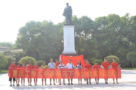 出征仪式结束之后,实践团便动身前往铜梁县庆隆镇,该镇刘波副镇长接待了实践团一行。实践团成员在路途中了解到邱少云烈士事迹陈列馆就在铜梁县巴川镇,大家不顾暑热,在此下车瞻仰烈士伟绩长达一小时,再继续走向庆隆镇。