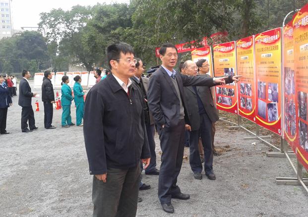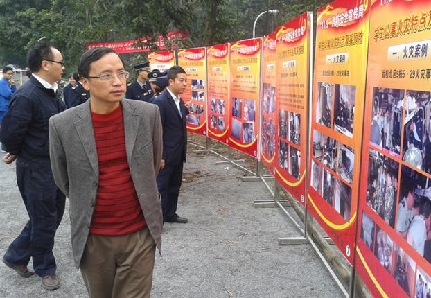 学院领导观看消防宣传展板