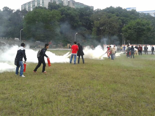 同学们正在积极参与灭火演练