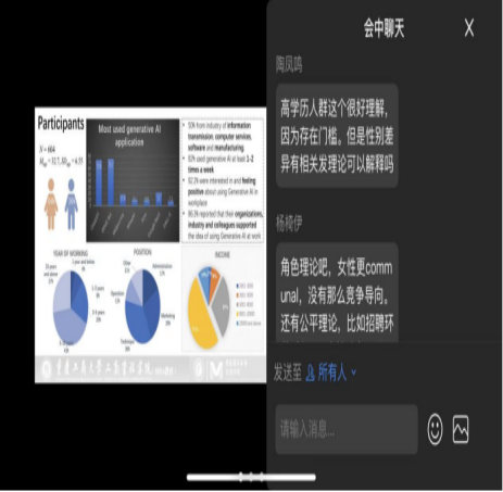 本学期,重庆工商大学人力资源管理系研究生沙龙活动通过线上线下相结合的方式成功举办了六期,为广大研究生搭建了一个精彩纷呈、多元开放的学术交流平台。活动邀请了杜捷、王烽权和王倩老师以及多位硕士研究生进行分享。期间,各位老师及研究生在沙龙活动中分享见解、展开讨论,使得整个活动充满了浓厚的学术气息。沙龙紧扣当下学术与行业发展脉络,精准锚定多个极具前瞻性、深度性的主题,从人工智能重塑职场生态,到企业在数字化浪潮中的转型破局;从绿色创新引领产业升级,再到新兴消费趋势洞察,多元维度全方位拓展研究生们的学术视野,契合不同研究方向学子的求知需求。
