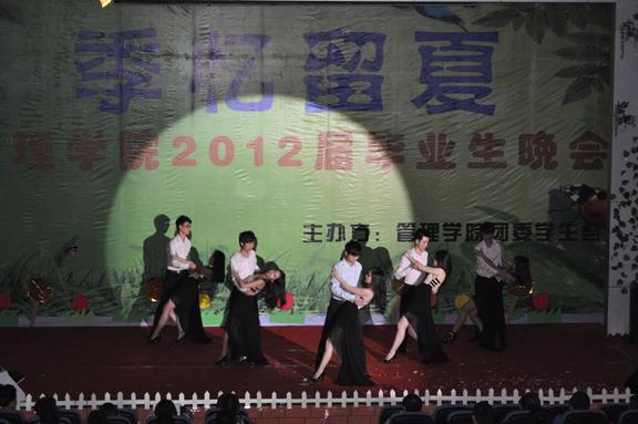 本场晚会共分为“萌芽”、“蓓蕾”和“绽放”三个篇章,象征着同学们在大学由最初的懵懂可爱到最后成熟稳重的完美蜕变过程。晚会在激情四射的开场舞《loving you》中拉开帷幕。随后,架子鼓、拉丁舞、小品、现代舞、小提琴、大合唱、诗歌朗诵、话剧表演、歌曲串烧等节目相继亮相,掀起晚会的一阵阵高潮。其中,学院教师祝福与师生同唱环节展现了浓浓的师生情谊,引发了在场毕业生的离别之情和对母校的眷恋。最后,在一曲《老友万岁》温馨欢快的歌声里,毕业晚会圆满落幕。至此,管理学院“季忆留夏”2012届毕业生晚会圆满结束。