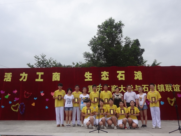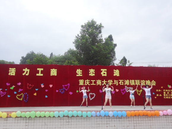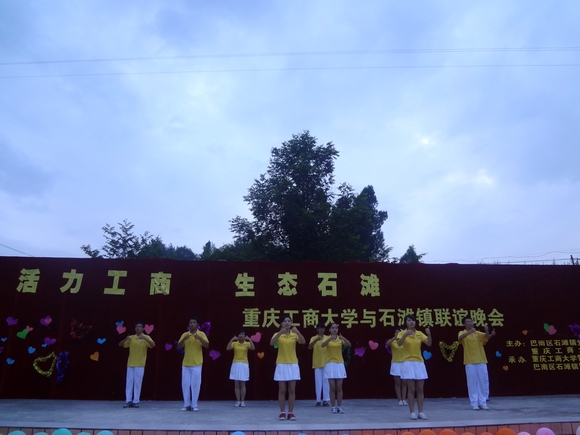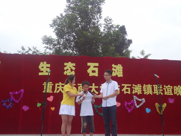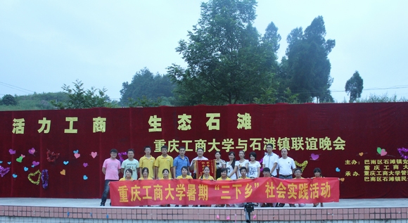 7月17日晚6:20,重庆工商大学管理学院2012暑期“三下乡”实践团与石滩镇联谊晚会在石滩镇文化广场顺利举行。石滩镇副镇长熊维才和石滩镇党委委员张谊出席了晚会现场。