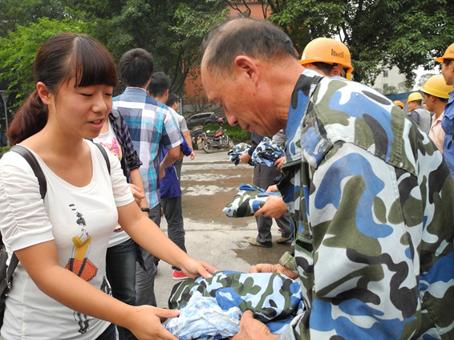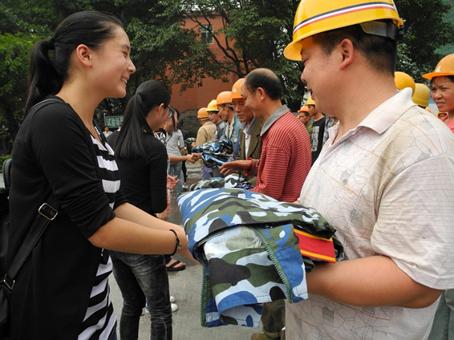近日,管理学院“爱心桥”义协和学生会与交通科研院施工工地联合组织了一次为农民工送军服的活动。管理学院党总支尹建平副书记、管理学院分团委书记卓志宏老师和交通科研院施工工地负责人出席了本次活动。