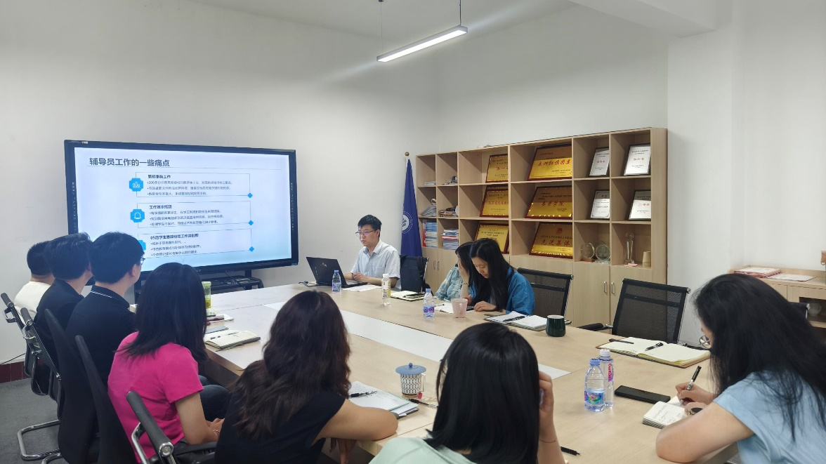 5 月 19 日上午,44118太阳成tyc城集团学工部举办 “数智赋能思政教育” 研讨交流会,特别邀请人工智能学院张鑫老师开展 AI 应用培训。学院党委副书记程亚及全体辅导员参会,通过案例分享、互动实操与深度研讨,共同探索 AI 技术与学生工作的融合路径。