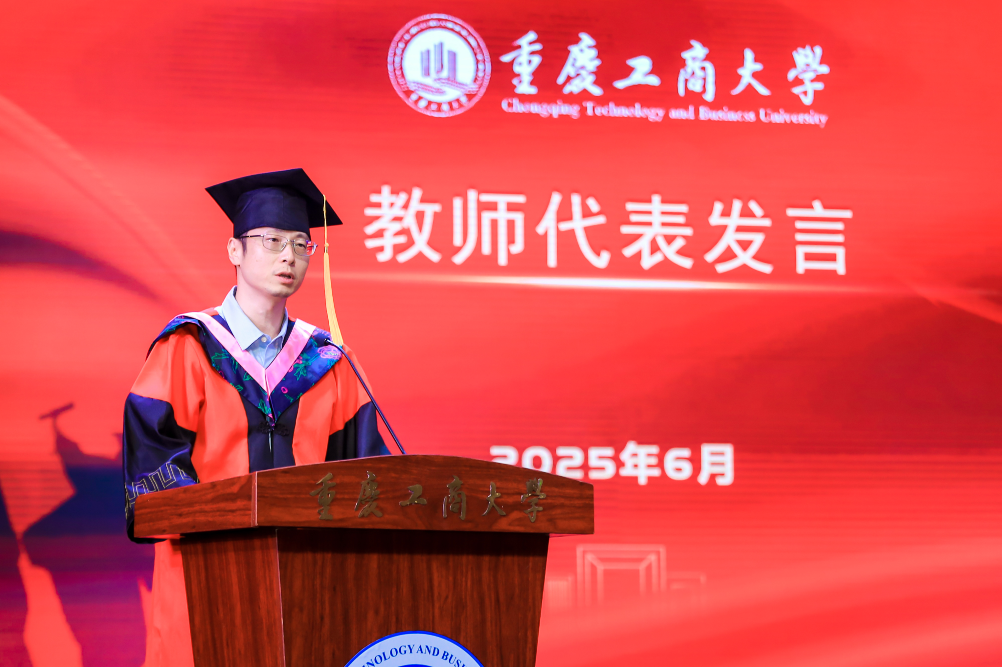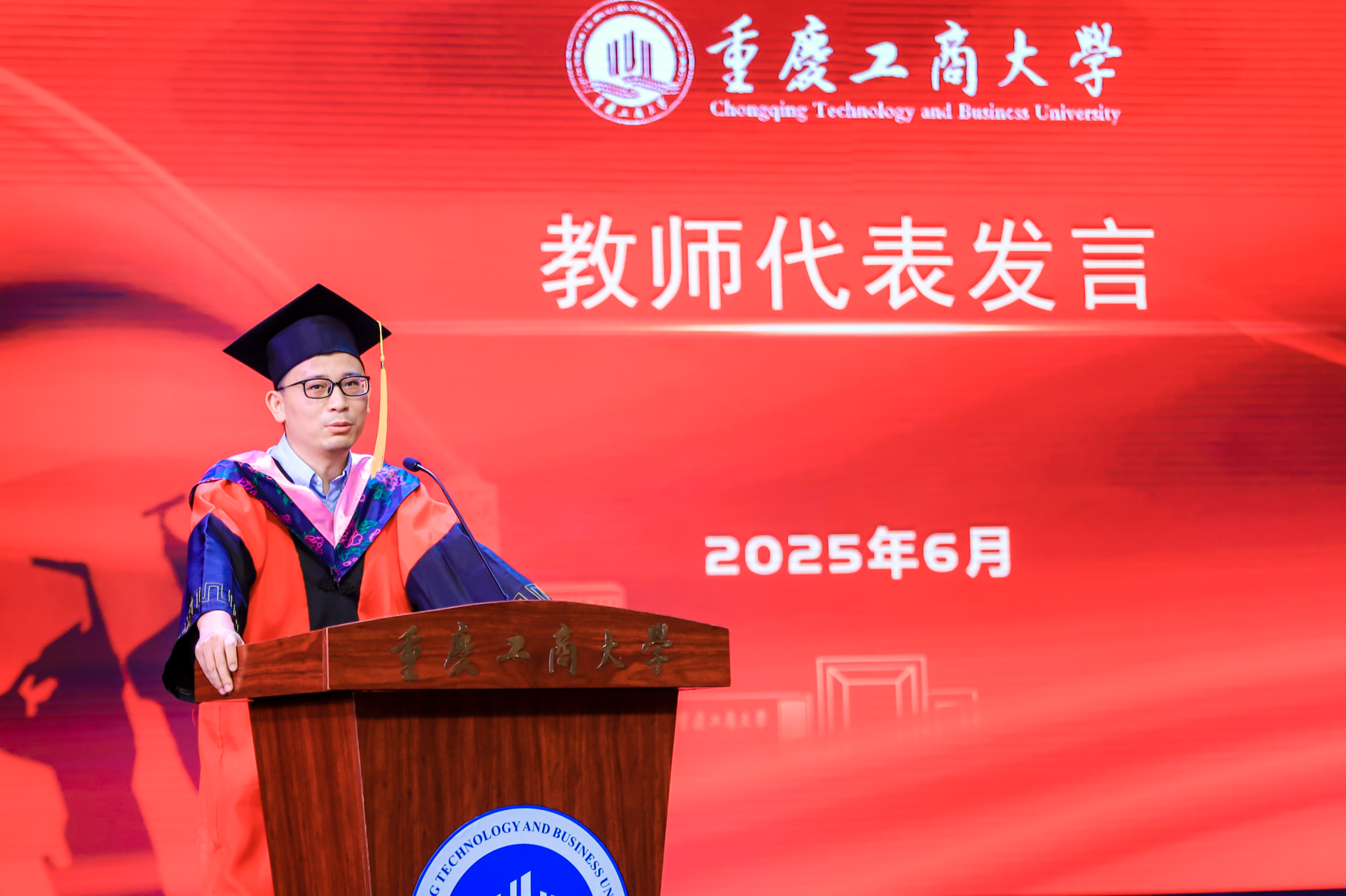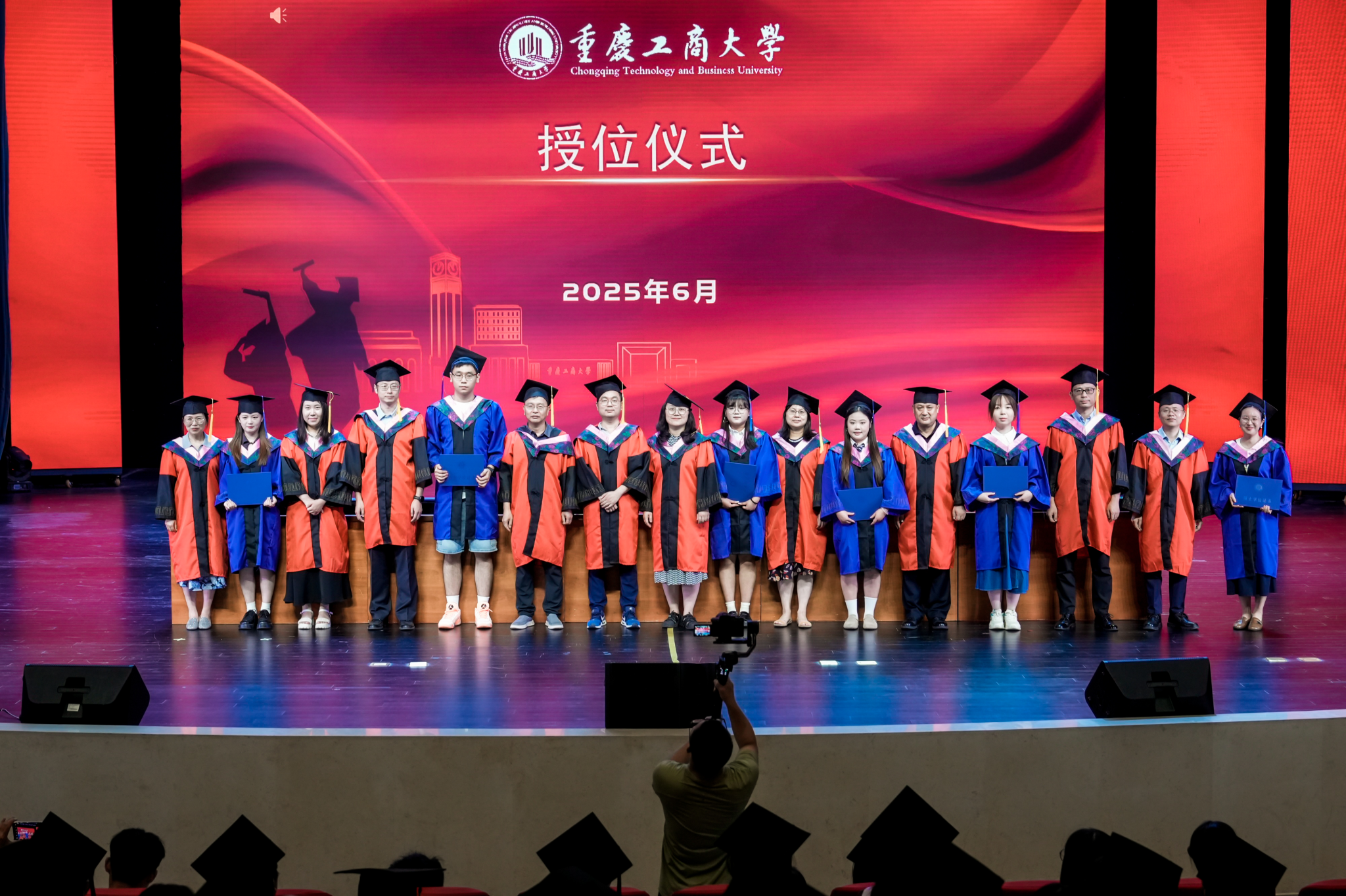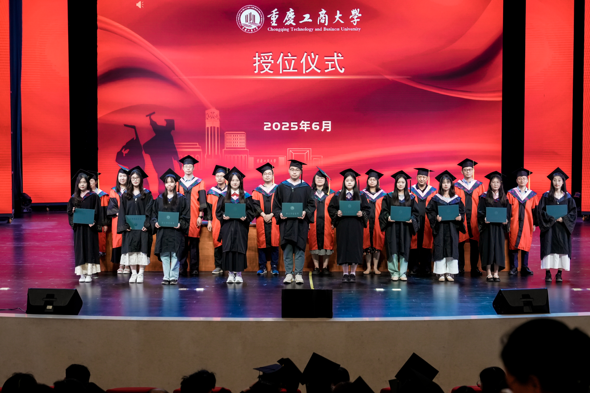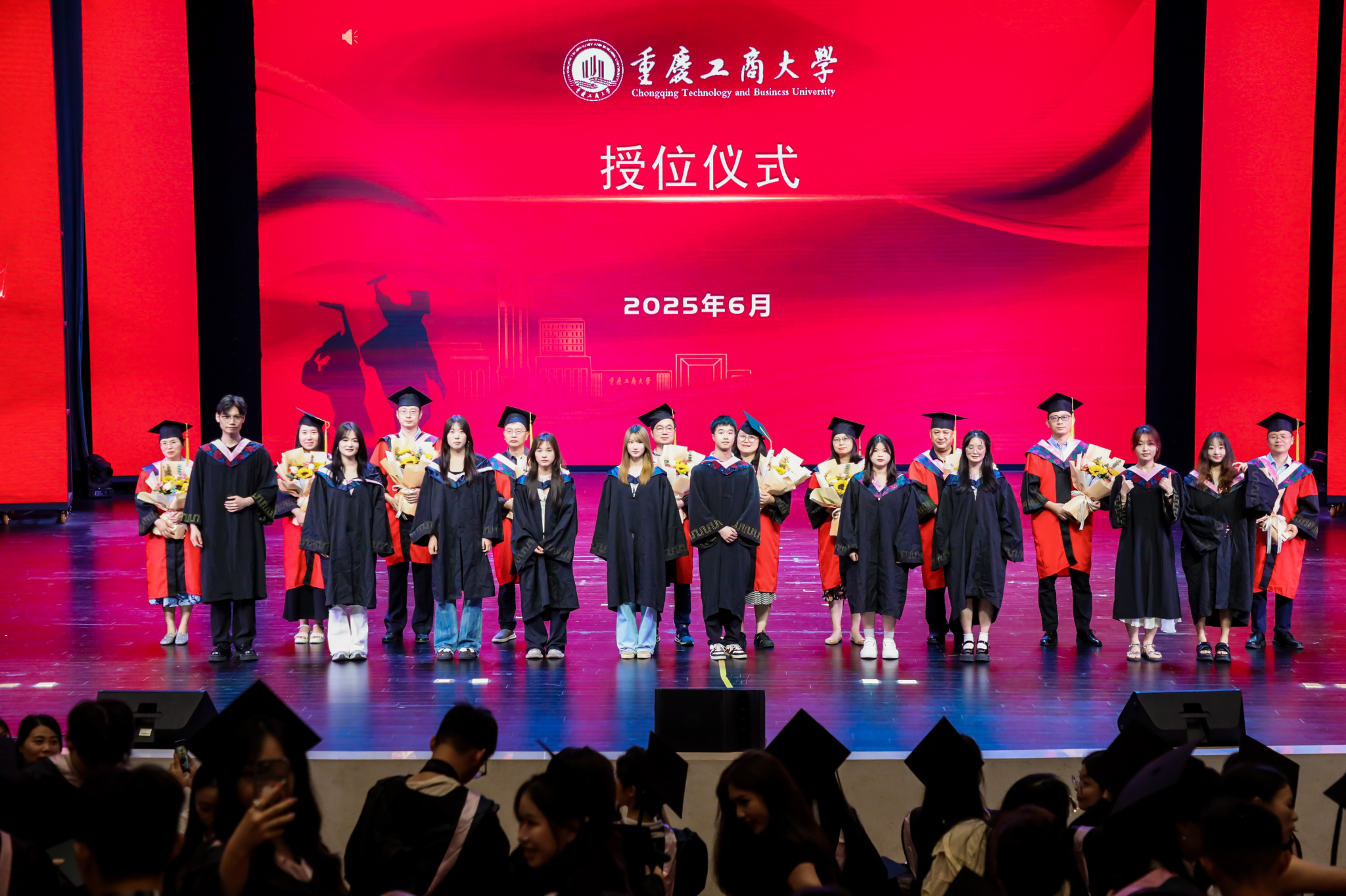 六月的重庆,流萤缀夏,晚风携着蝉鸣掠过南山。6月17日下午,重庆工商大学大剧场内灯光璀璨,44118太阳成tyc城集团2025届毕业典礼在此盛大启幕。学院党政领导、教职工代表、硕士及本科毕业生代表与亲友齐聚一堂,共同镌刻这段意义非凡的青春印记。