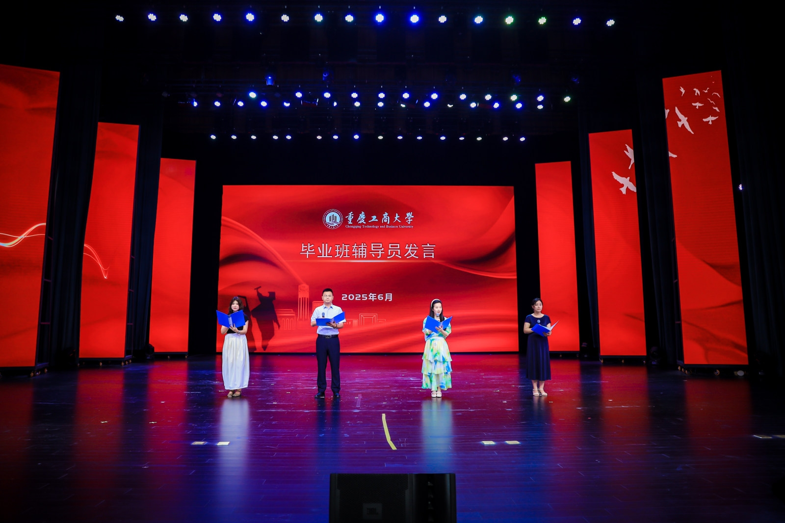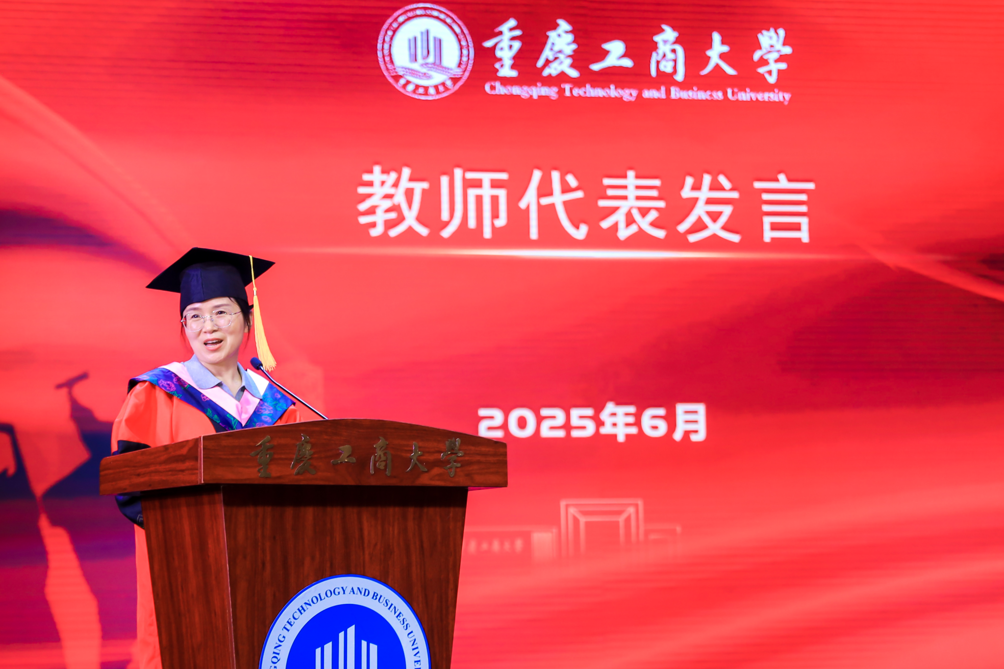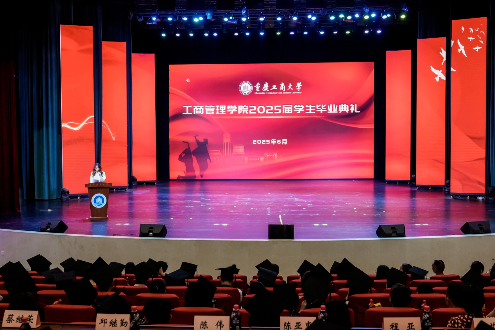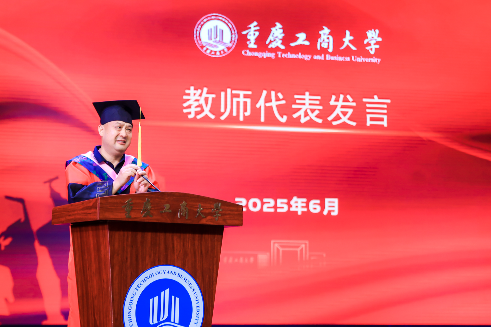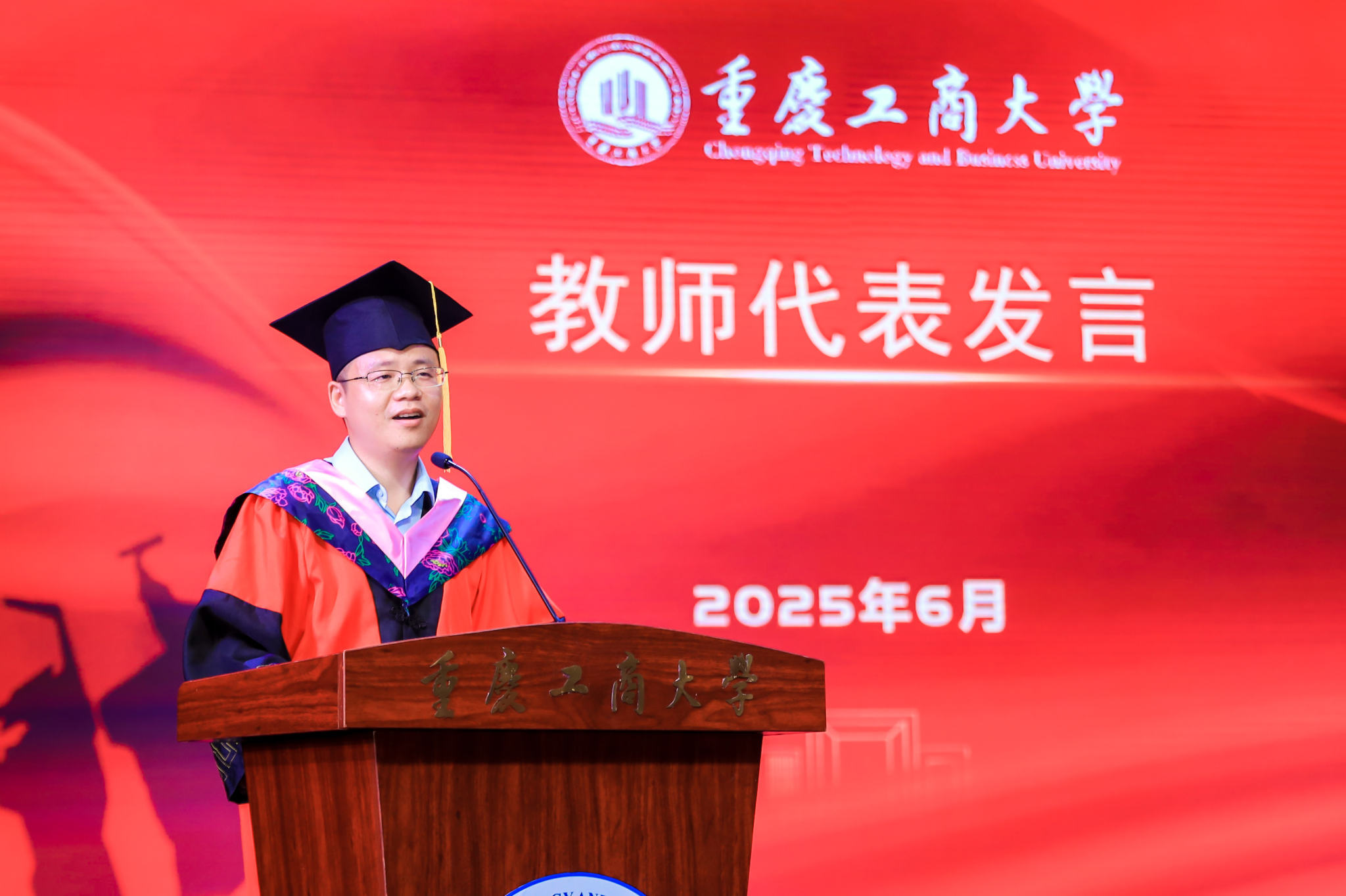 六月的重庆,流萤缀夏,晚风携着蝉鸣掠过南山。6月17日下午,重庆工商大学大剧场内灯光璀璨,44118太阳成tyc城集团2025届毕业典礼在此盛大启幕。学院党政领导、教职工代表、硕士及本科毕业生代表与亲友齐聚一堂,共同镌刻这段意义非凡的青春印记。