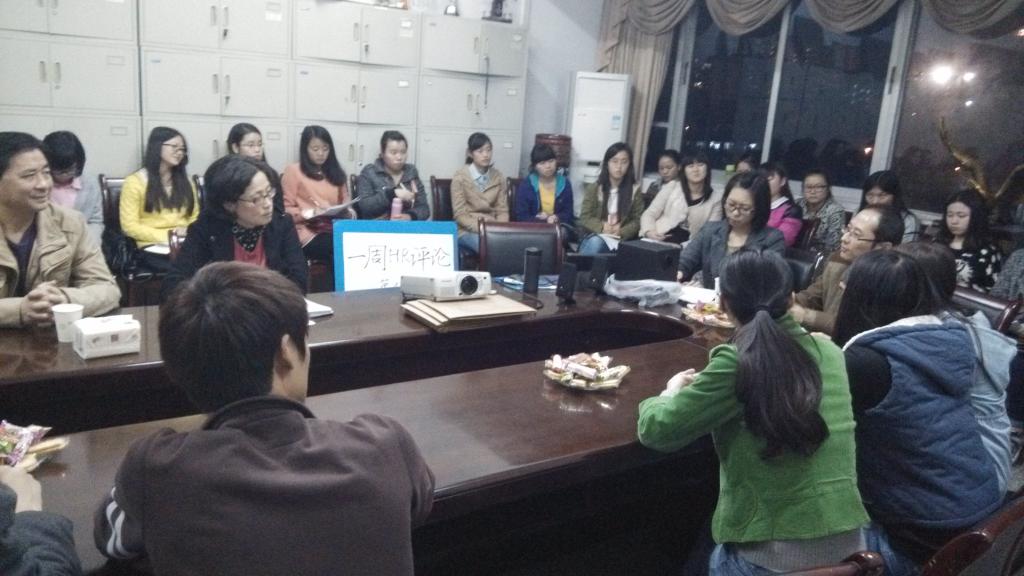 11月6日晚,我院人力资源管理专业传统活动“一周HR评论”在明德楼举行,从2010年举办第一期活动以来,本次已是第45期。人力资源管理系系主任鄢清华老师以人力资源相关新闻研讨为主题,让同学们更好地将专业知识运用于实践。出席活动的嘉宾还有重庆明珠机电集团董事、战略发展部部长滕剑先生,我校国际合作与交流处韩艳处长,人资系唐仕军教授。