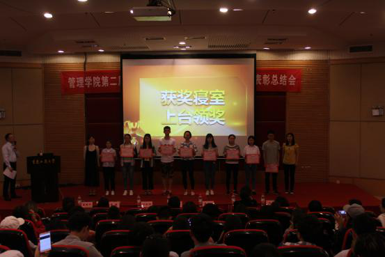 在颁奖环节,学院学团办谭予涵老师宣读了第二届“我的寝室我的家”寝室美化大赛获奖寝室名单,本次活动获奖的30名寝室代表依次上台领奖。