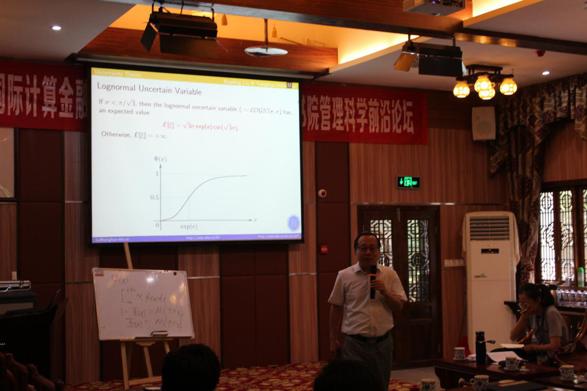 中国人民大学高金伍教授为现场所有参会人员带来了不确定理论的运算法则的部分内容,使现场的老师和同学们在理解不确定理论的原理基础上,逐渐掌握用什么方法和法则来使用不确定理论去解决实际的计算和应用问题。