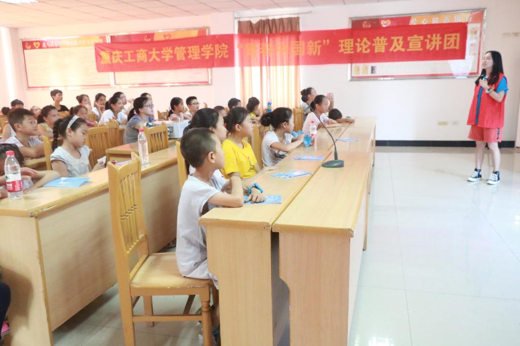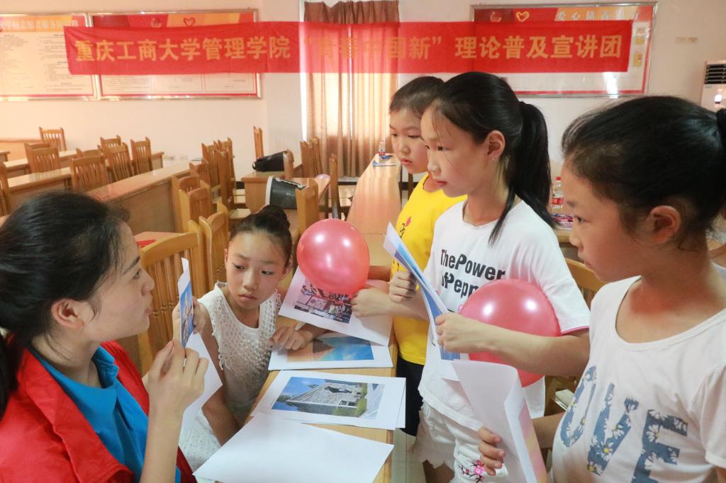 2018年暑期来临之际,重庆工商大学管理学院“青春中国新”理论普及宣讲团的大学生志愿者们来到重庆市九龙坡区走马镇,与走马当地共建市民学校,以寓教于乐的授课方式服务当地留守儿童,走进社会,展开调研,为孩子们带去了为期五天的“暑期嘉年华”活动。
