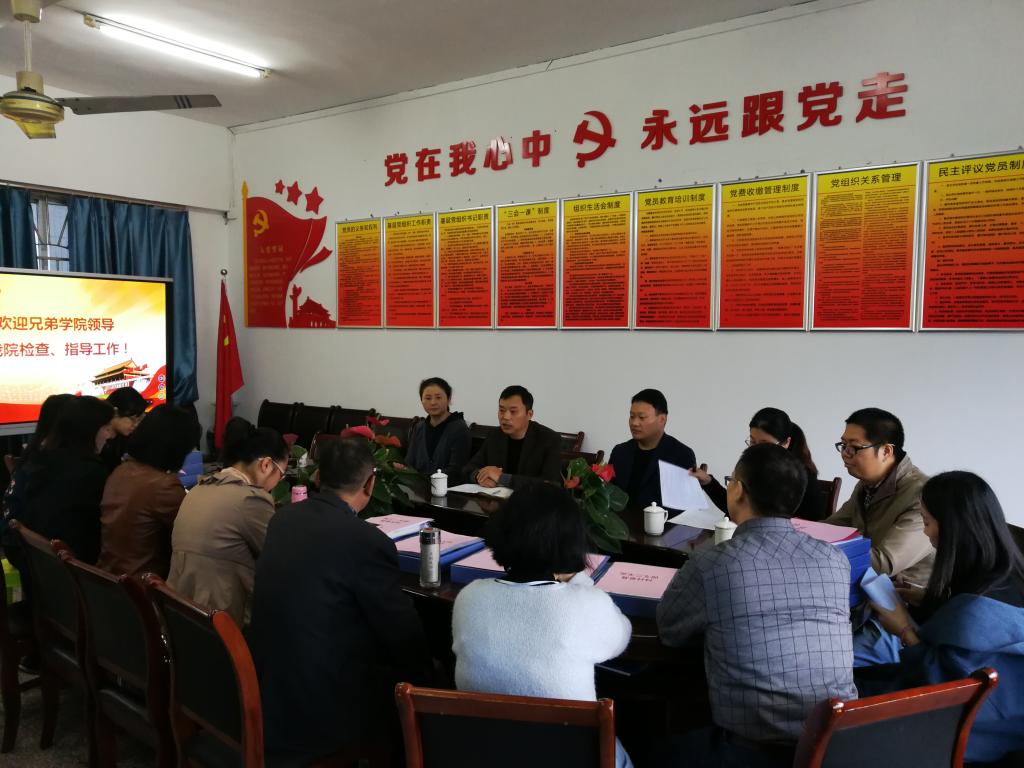 9月25日上午,外语学院陈晓东书记、机械学院刘洋书记、体育学院余晓副书记一行五人来我院进行基层党建工作互查调研。工作组对学院党建工作抽查了材料,并与学院教工、学生党支部书记进行了座谈,对学院党建工作提出建设性、针对性意见。