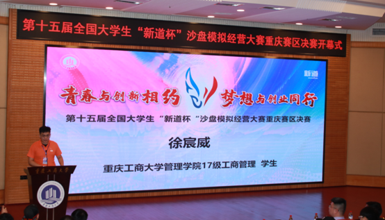 主办单位新道科技股份有限公司助理总裁师唯伟先生在讲话中向竞赛的承办单位重庆工商大学表示了感谢,回忆了参加竞赛的沙迷(对沙盘大赛粉丝的昵称)们带给自己的感动。师总回顾新道杯沙盘大赛举办十五届以来,从传统的ERP物理沙盘时期发展到今天的互联网沙盘时代,竞赛的表现形式不断追随技术创新的步伐,与时俱进,目前已成为经管类学科竞赛中规模最大、影响力最广的赛事之一。
