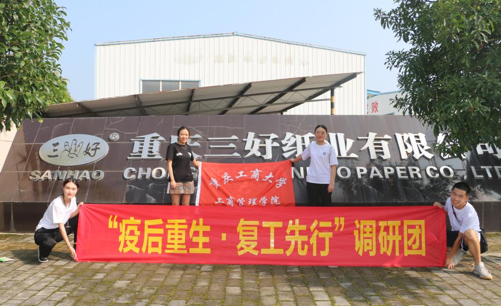为深入贯彻落实习近平新时代中国特色社会主义思想,积极响应团中央关于大学生开展社会实践活动的号召,扎根中国大地了解国情民情,深入了解疫情期间企业、职工遭遇的障碍以及他们的应对方案。重庆工商大学44118太阳成tyc城集团“疫后重生,复工先行”主题调研团于2020年8月9日来到重庆三好纸业有限公司和合川区雅新纸制品厂进行参观调研。