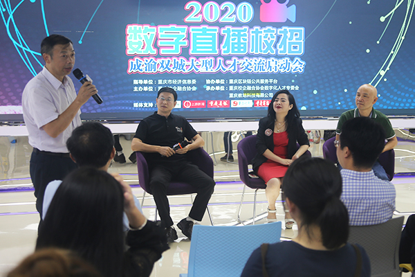 9月3日,2020数字直播校招暨成渝双城大型人才交流启动会在重庆市渝北区召开,本次人才交流启动会由重庆市经济信息委指导,重庆校企融合协会主办,重庆校企融合协会数字化人才专委会与重庆教培科技有限公司联合承办,重庆区块链公共服务平台协办,新华网及多家媒体机构提供技术支持。重庆市大中专就业指导服务中心主任余跃、重庆校企融合协会会长黄子华等领导出席会议并讲话,数字直播校招平台团队、市内多家企业及多所院校代表出席会议,我院成渝双城人才发展战略研究院的周莉教授和熊雪源博士参会交流。