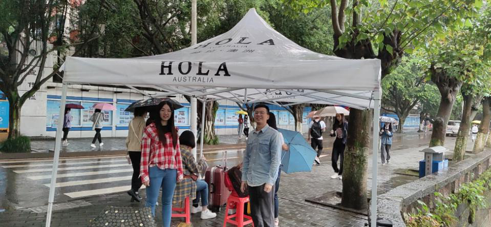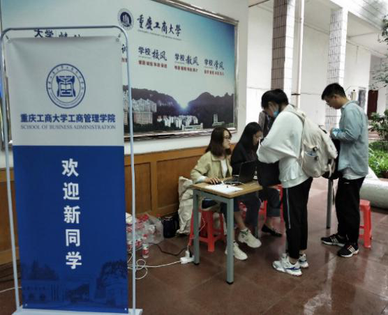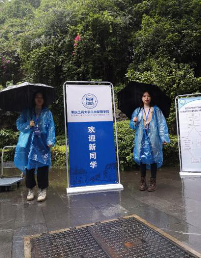 迎新工作的第一天,重庆突降暴雨,给前来报到的同学增添了不便,也给迎新工作增加了不少难度。为了给新生提供贴心便利的服务,学院立即启动应急措施,在男女生宿舍前的服务点安置了雨棚。校门口迎新点的同学引导新同学先将不便携带的行李寄存在宿舍门口的迎新点,再将他们引导到明德楼大厅报到处,进行“轻装”报道,极大地减轻了新同学的负担。