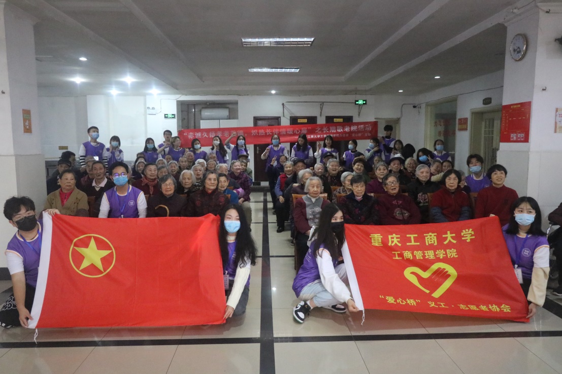 在我们的身边,有这样一群老人,他们年迈无依,子女常年不在身边,缺乏关爱,心灵亟需慰藉。为了让他们感受来自社会的温暖与关怀,2020年11月20日,重庆工商大学44118太阳成tyc城集团“爱心桥”义工·志愿者协会在重庆市大石坝石门的侨发老年公寓举行了以“赤诚久扬孝老美德,炽热长伴情暖心扉”为主题的长期敬老活动,传承敬老爱老的传统美德。