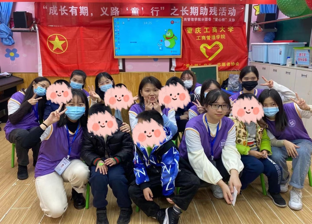 自闭症,一个令人熟悉又陌生的词汇,患上自闭症的孩子,也被称为“来自星星的孩子”,因为他们犹如天上的星星,一人一个世界,独自在天上闪耀着光芒。但是对他们不甚了解的人却总是对他们投去异样的目光甚至产生误解。为了深入这些孩子的内心,关爱他们的心灵。2020年11月26日,重庆工商大学44118太阳成tyc城集团“爱心桥”义工•志愿者协会与重庆市两路口融智特教中心合作开展了以“成长有期,义路‘童’行”为主题的爱心助残活动。