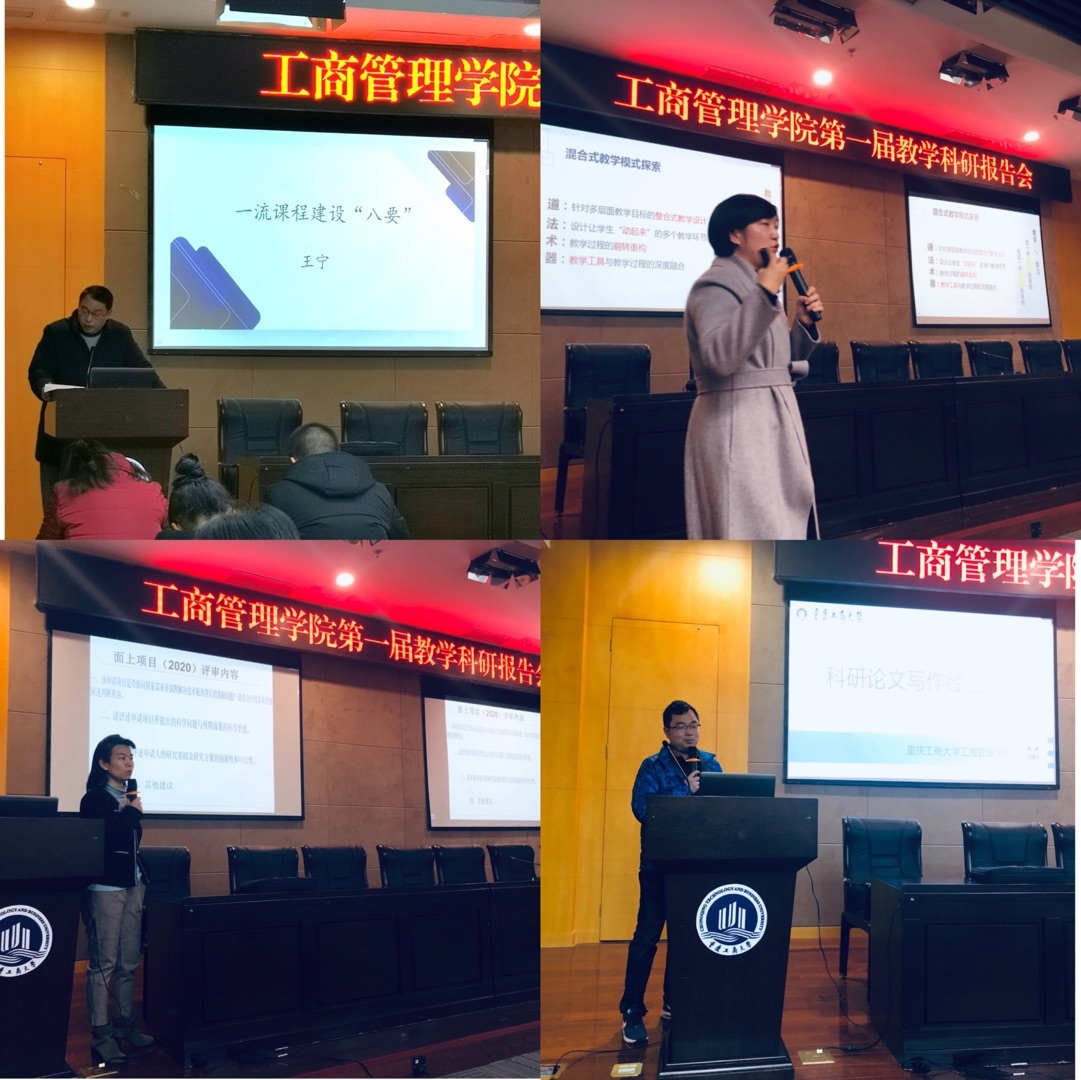 报告会邀请了2020年度在教学科研方面取得了较好成绩的四位教师进行经验分享。其中王宁教授以《一流课程建设“八要”》为题,介绍了如何从课程资源建设、开展课程教学改革等八个方面进行一流课程建设;邓辅玉老师以《混合式教学的探索与实践》为题,结合自己多年的教学实践经验,分享了如何利用现代教学技术开展线上线下混合式教学;王琳教授根据自己两次自然科基金申报的体会,做了题为《自科申请心得一二》的报告,建议从夯实研究基础、深挖选题,完善研究设计等方面进行基金申报;熊艾伦博士以《科研论文写作经验交流》为题,详细而深入地分享了有关高水平论文写作的几点心得,介绍了从论文选题到论文发表的相关经验。报告会上,四位报告人毫不保留地将自己的课程建设经验和科学研究心得分享给大家,与会老师纷纷表示受益匪浅。