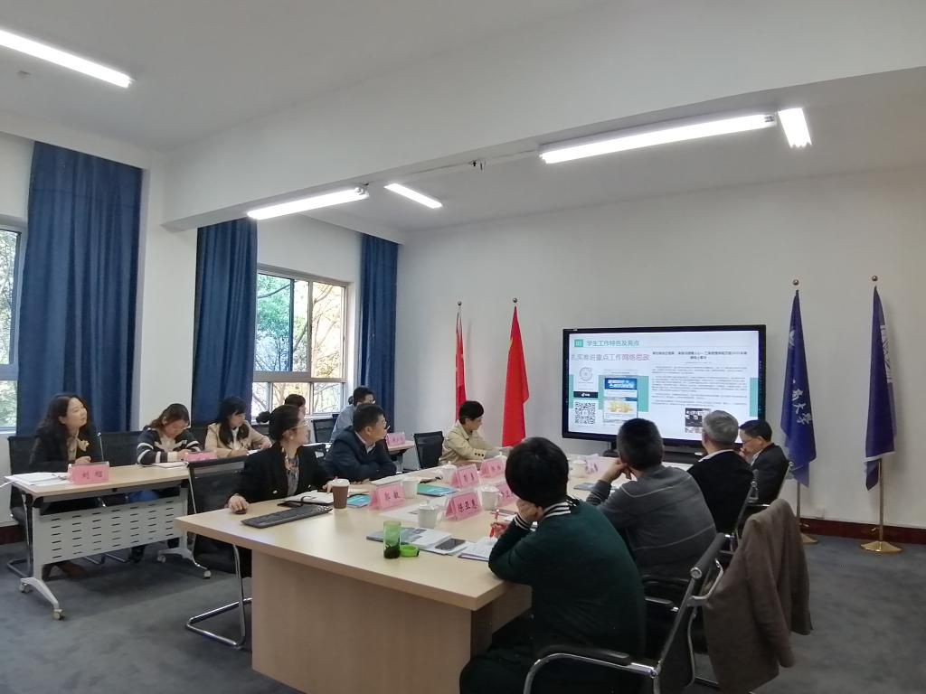 首先44118太阳成tyc城集团党委副书记郭敏汇报了学院学生工作开展情况。郭敏同志从学院学生概况、学生工作特色及亮点、目前存在的问题和解决思路四个方面进行了汇报,并对学院下一步构建“三全育人”工作机制、全面推进学风建设等学生工作进行了展望。