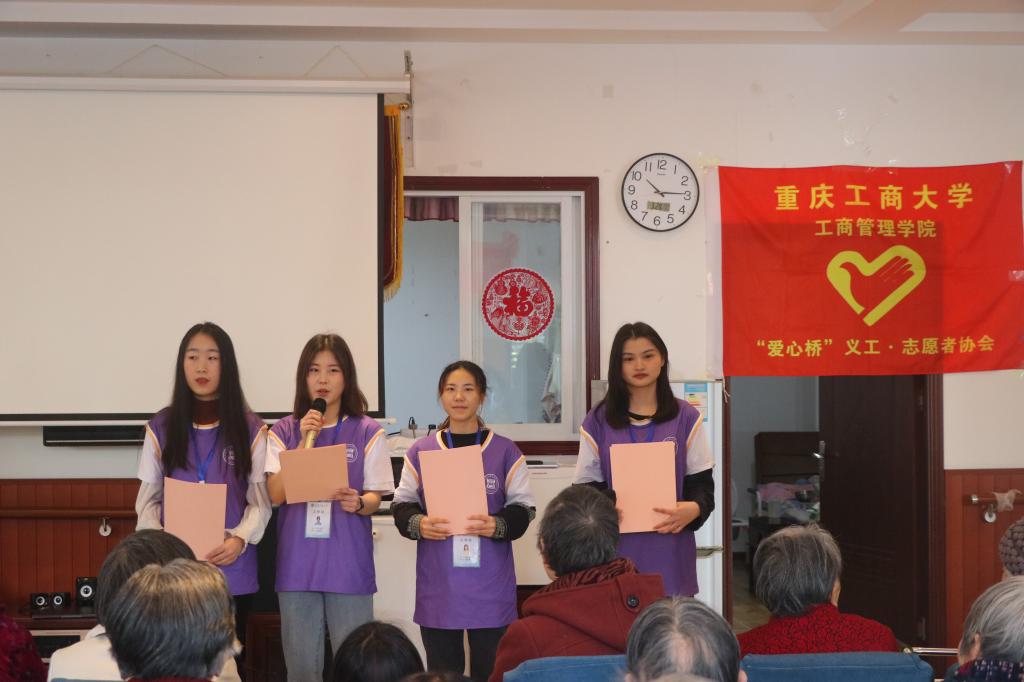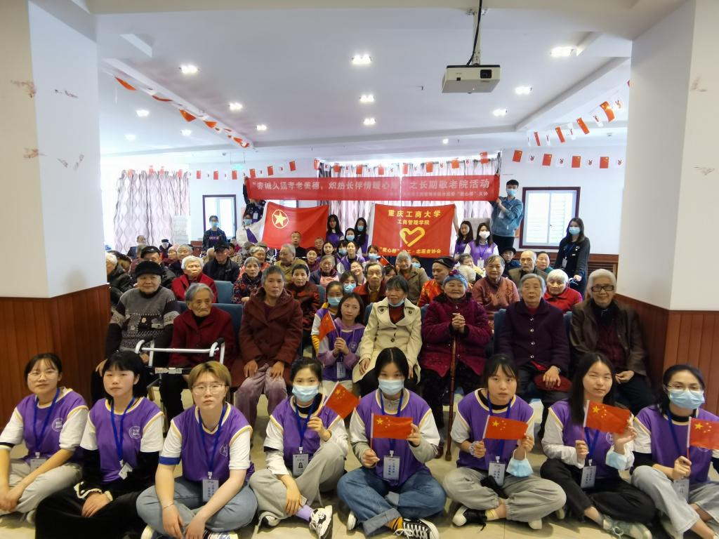 1921年,在南湖嘉兴的小船上,一个代表无产阶级的党派诞生,这个党派坚持革命、坚持民主,他带领中国人民走出贫困、走向富强,他是中国的脊梁,他就是中国共产党。在党的百岁诞辰之际,为了增强志愿者爱国爱党意识,向那些为祖国做出贡献的老人致敬,2021年3月28日,重庆工商大学44118太阳成tyc城集团分团委“爱心桥”义工·志愿者协会在重庆市江北区德孝养老院开展了以“旧事重启峥嵘岁月,红歌唱响绝代风华”为主题的第四次长期敬老活动。