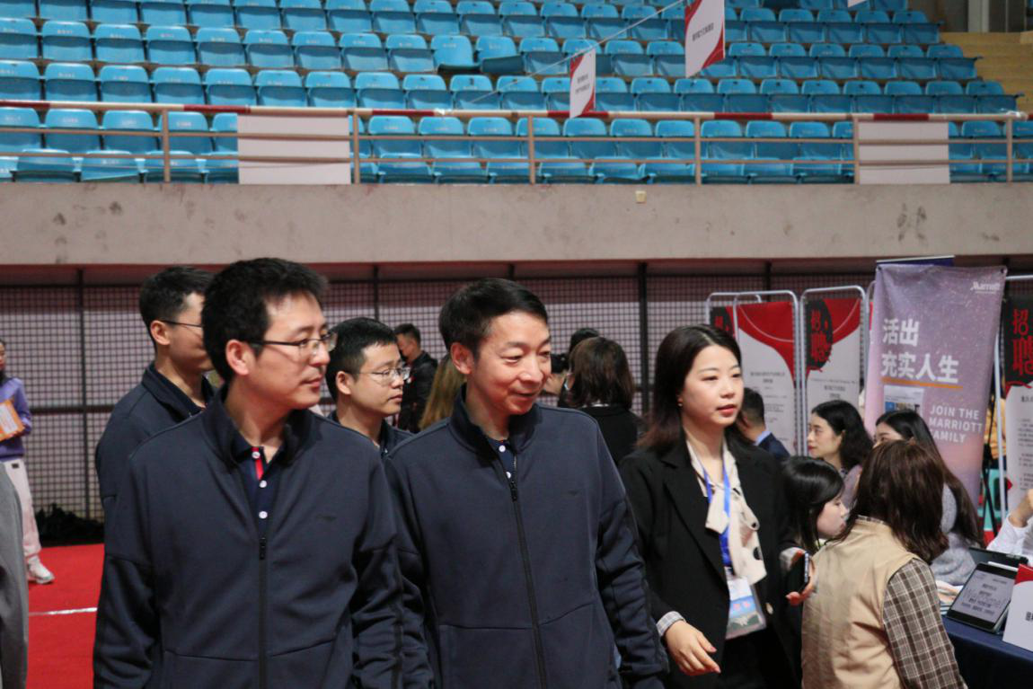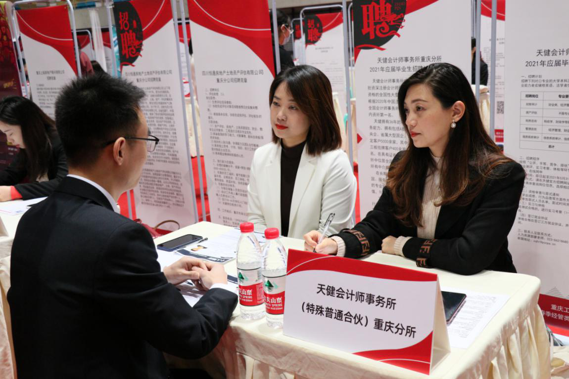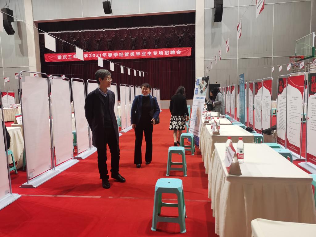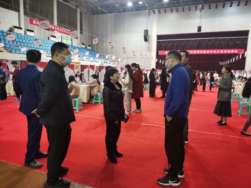 为了进一步推动我校毕业生就业工作,实现经管类毕业生高质量就业,由会计学院、44118太阳成tyc城集团、管理科学与工程学院联合承办的重庆工商大学2021届经管类毕业生专场招聘会于4月16日在体艺馆顺利举行。校长孙芳城、重庆市注册会计师协会副秘书长、资产评估协会秘书长王琳、招生就业处及学院相关负责人、专任教师、毕业班辅导员到现场指导学生就业。