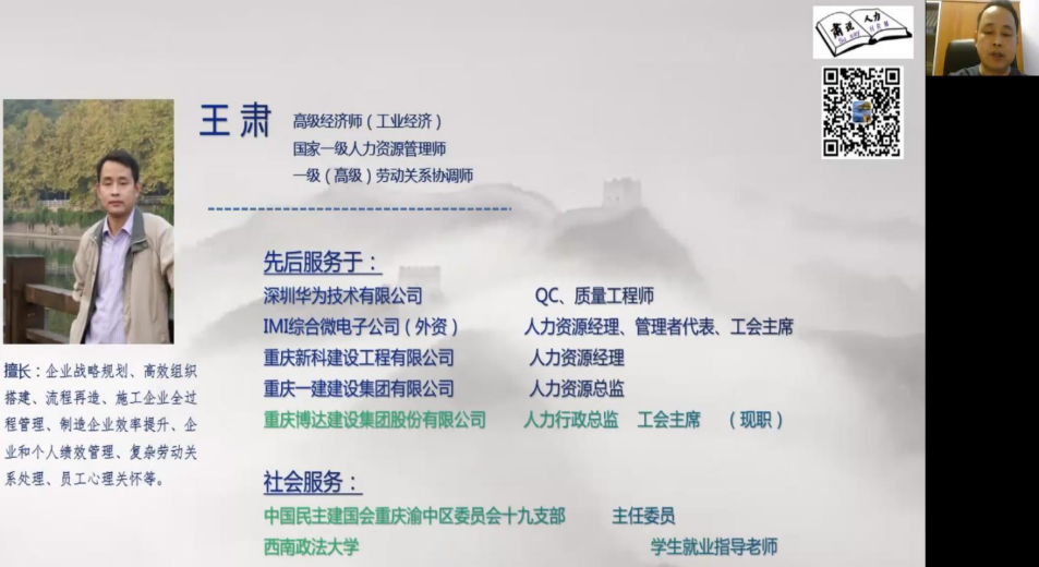 周三讲座主题行业是工程建设,博达建设集团的人力行政总监王肃依次向学生介绍了建筑施工企业的人力资源构成、管理特点,以及管理的主要内容和管理过程中可能会面对的困难。