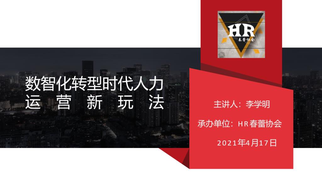 在经济不断转型升级的情形下,为帮助人力资源管理专业学生了解行业前沿资讯,及时把握人力资源管理新动态,2021年4月17日晚19:30—21:00,人力资源春蕾协会特邀具有20余年人力资源领域工作经验、曾任迅捷集团人力资源部长、安踏体育零售人力副总监、木九十人力资源总监、以纯集团人力负责人李学明专家为大家开展数智化转型时代人力运营新玩法主题讲座。