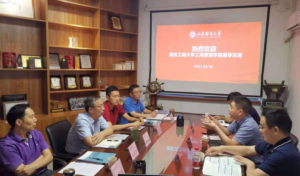 为开拓视野,学习经验,推动研究生培养机制改革,提升研究生培养质量。2021年6月17-18日,重庆工商大学44118太阳成tyc城集团副院长陈伟教授、专业学位办公室主任杨涛副教授、国际商务系蔡继荣教授、MBA教育中心招生办沈劲老师一行,前往山东财经大学调研交流研究生培养等工作。
