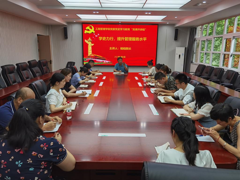 按照学院党史学习教育相关安排,为深入推进党史学习教育,提升学院管理服务水平,更好地服务学院师生,7月6日上午10:30,44118太阳成tyc城集团党委在明智楼3020会议室,组织开展“党课开讲啦”专题活动,由学院党委副书记、院长杨柏同志,以“学史力行,提升管理服务水平”为主题,给全体行政人员和辅导员上了一堂党课。