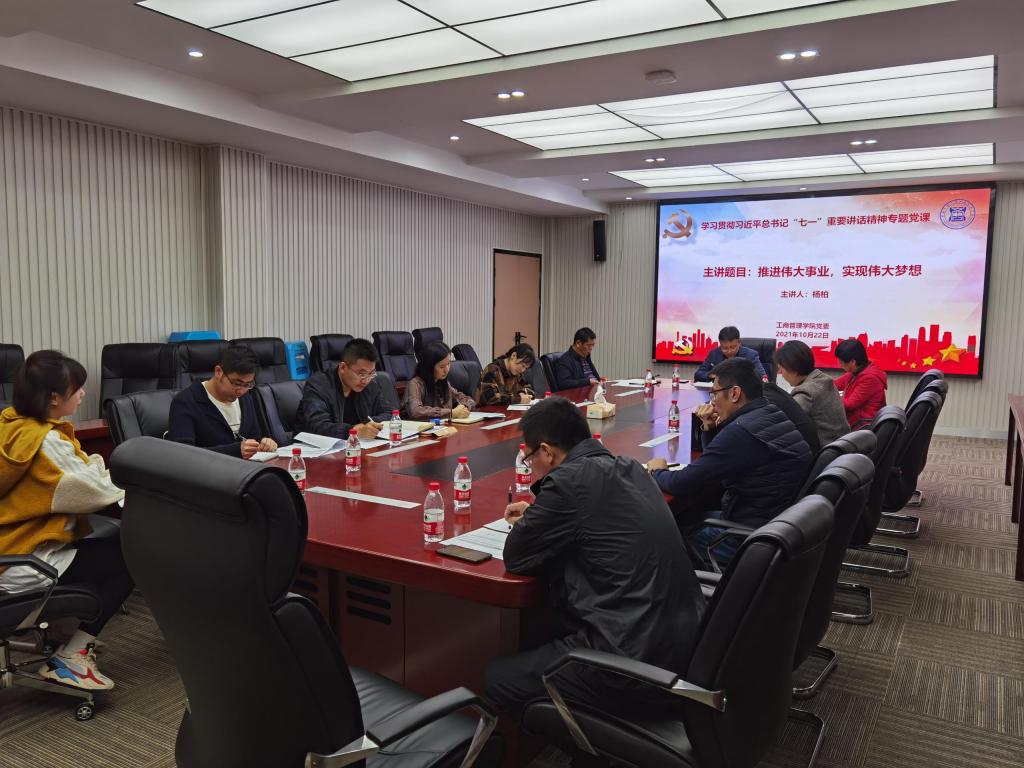 为进一步深入学习贯彻习近平总书记“七一”重要讲话精神,10月22日下午,在明智楼320会议室召开了“2021年44118太阳成tyc城集团党委中心组第五次学习会”,会上由学院党委副书记、杨柏同志,以“推进伟大事业,实现伟大梦想”为主题,给学院党委委员和教工、学生支部书记讲授了一堂党课。