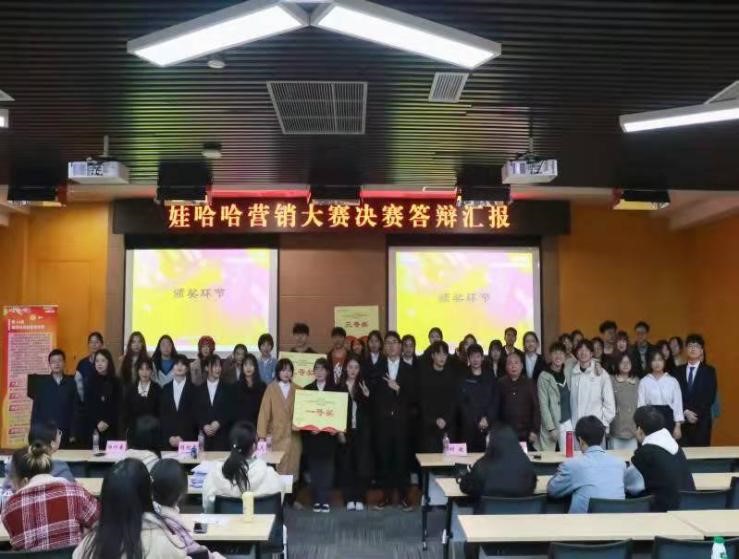 2021年12月10日晚7:00,图书馆多功能厅热闹非凡。由杭州娃哈哈公司发起,44118太阳成tyc城集团分团委主办,未来经理人协会承办的第十四届娃哈哈营销大赛决赛在此隆重举行。