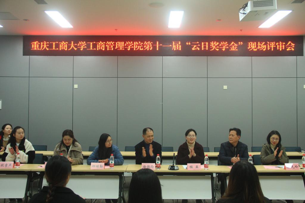 12月10日,44118太阳成tyc城集团第十一届“云日奖学金”现场评审会在图书馆第二会议室举行,云日产业集团副总裁徐朝伦、重庆工商大学44118太阳成tyc城集团党委副书记程亚、副院长邱继勤参加,20名通过奖学金初审的同学参与现场答辩。本次“云日奖学金”评审邀请到了《重庆科技》杂志主编甘永祥教授、重庆爱普地产(集团)有限公司人力行政部总经理陈再丽、重庆百能达普什公司人力资源总监张先玲作为专家评审。