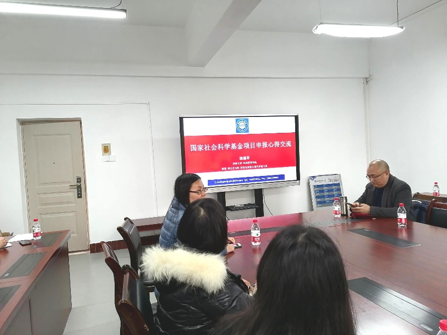 接着,涂教授逐一同与会教师就国家社科项目申报工作进行了指导,并就项目申报书中存在的问题作了详细说明。本次项目申报指导不仅指出了现有申报书中存在的不足,同时对后期申报书的完善也起到了很好的指引作用。