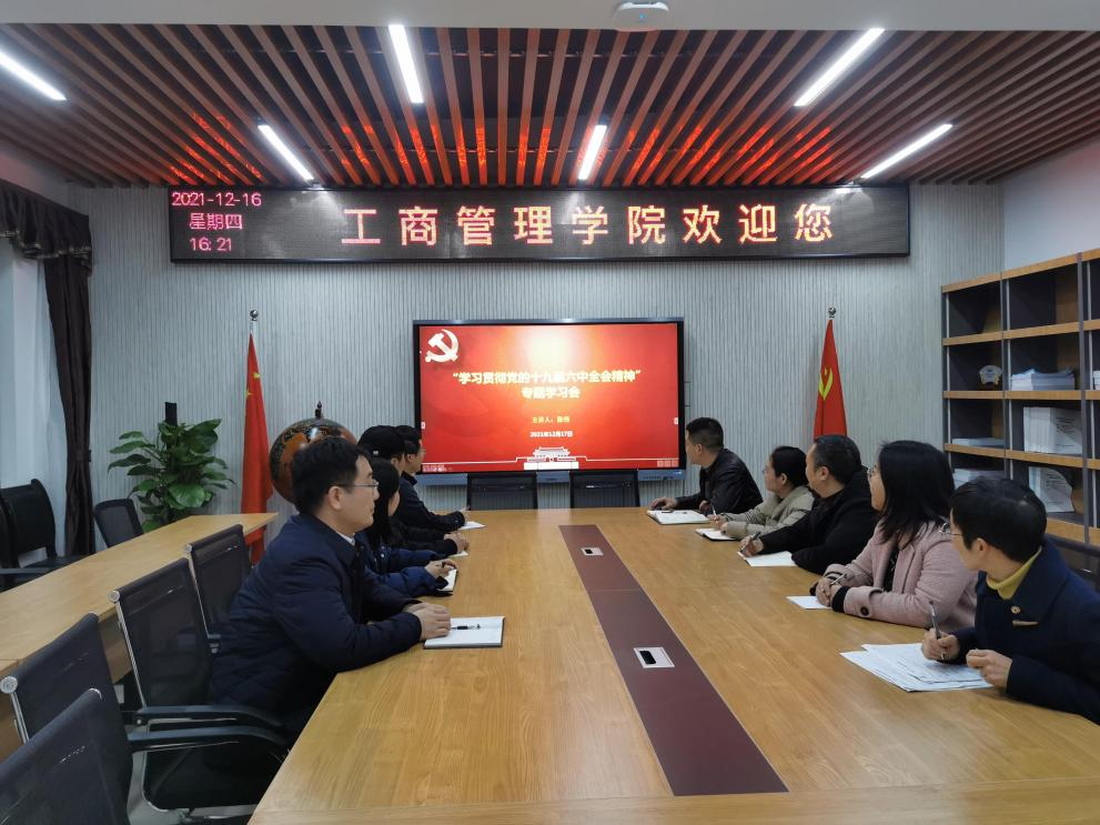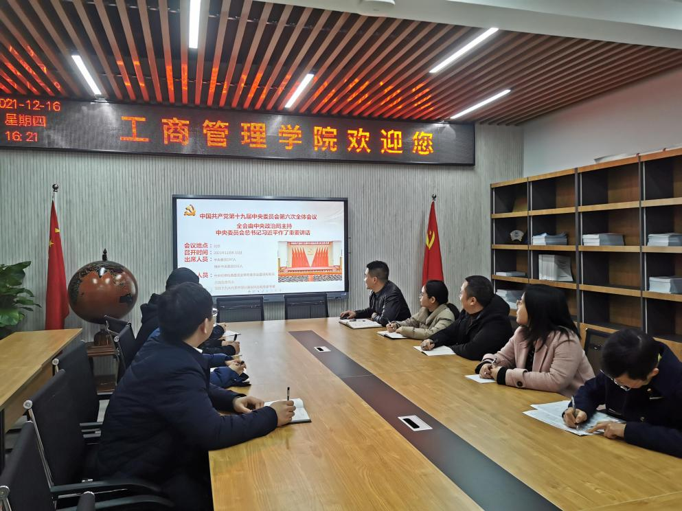 为深入贯彻学习党的十九届六中全会精神,进一步深刻领会六中全会精神的重大意义和深刻内涵,44118太阳成tyc城集团学科建设办公室、科研办公室、研究生工作办公室、MBA教育中心等部门的行政人员和学院部分教授代表、研究生导师代表于2021年12月17日上午在明德楼4010会议室开展了十九届六中全会精神集中专题学习,此次集中学习由学院副院长陈伟同志主持并领学。