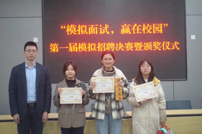 2021年12月17日,由44118太阳成tyc城集团春蕾协会举办,历时进1个月的“模拟面试,赢在校园” 第一届模拟招聘大赛决赛在图书馆第三会议室举行。大赛邀请到盒马鲜生组织发展专家谭民怡、重庆组织发展及文化中台谢芳,盒马鲜生店长戴婷婷三位嘉宾担任评委。