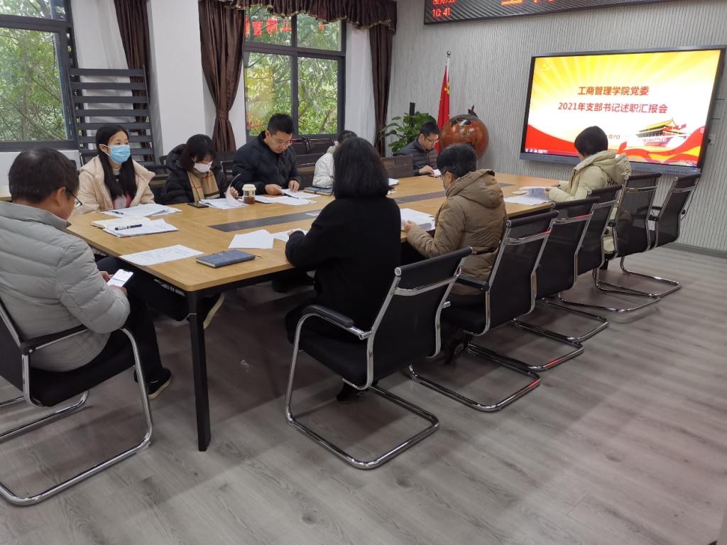 学院各党支部书记围绕履职情况、存在的主要问题及原因、下一步工作打算三个方面逐一进行述职汇报。在过去的一年里,各支部严格按照学校、学院党委的部署和要求,认真贯彻和学习习近平新时代中国特色社会主义思想、十九届六中全会精神、习近平总书记“七一”重要讲话精神,扎实开展党史学习教育主题活动;严格落实“三会一课”等党内生活制度;以党支部标准化建设为抓手,全面提升基层党建工作质量;注重发挥党组织的战斗堡垒作用和党员的先锋模范作用,基层党建工作开展扎实有效。同时,学院基层党建工作中也存在着理论学习不够扎实、党支部建设缺乏创新性、党员师生联系不紧等相对薄弱环节。
