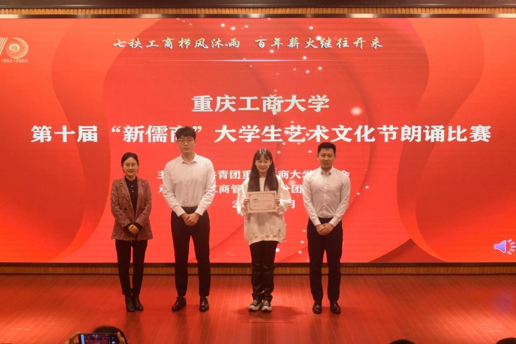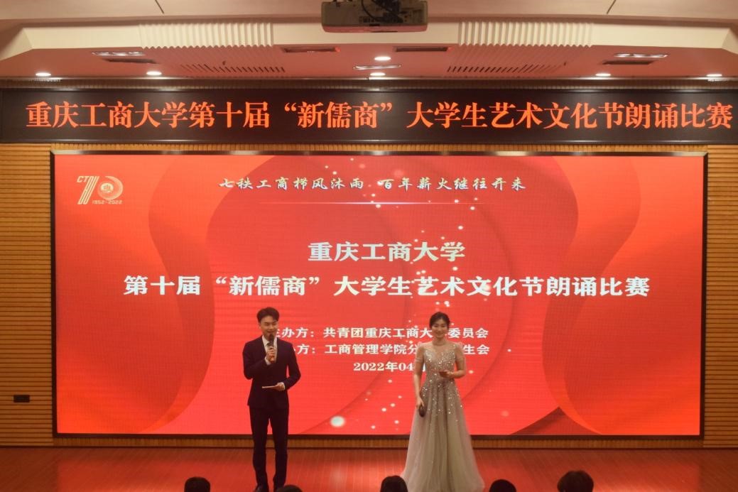 2022年,正值重庆工商大学建校七十周年,此次活动,工商学子朗漫漫征程道阻且长重工商砥砺七十年,诵悠悠历史辉煌灿烂工商人前行不停歇。本次比赛不仅仅是对娴熟朗诵技能的展现,更是工商学子展示自我、彰显魅力的表现。至此,第十届“新儒商”大学生艺术节朗诵比赛决赛圆满落幕。