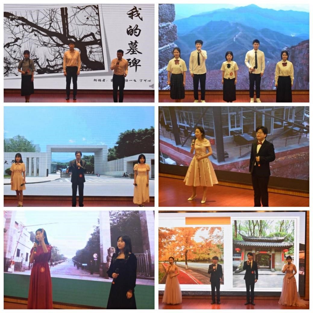 伴着婉转的旋律,《我们正年轻》娓娓道来;和着铿锵有力的节拍,《我的墓碑》轻声启颂;诵《同心向党,奔赴远方》时声情并茂;歌颂赞扬党的精神;“从海棠溪到龙脊山,从含宏广场到博智长廊,这座学府孕育着无数恣意昂扬的沛涛旭枫”是工商学子对工商大学的熟悉与热爱;“七十年来的教育事业,七十年来的桃李满园,重庆工商大恪守真理,只为理想信念。”工商学子用言语歌颂,用文字点缀,用激情挥洒,为重庆工商大学七十年华诞献礼。经过角逐,金融学院《我的墓碑》获得金奖,艺术学院《这条路》和通识学院《同心向党,奔赴远方》获得银奖,44118太阳成tyc城集团《我们正年轻》、经济学院《这条路》、文学与新闻学院《记得,我们的七十年》获得铜奖。