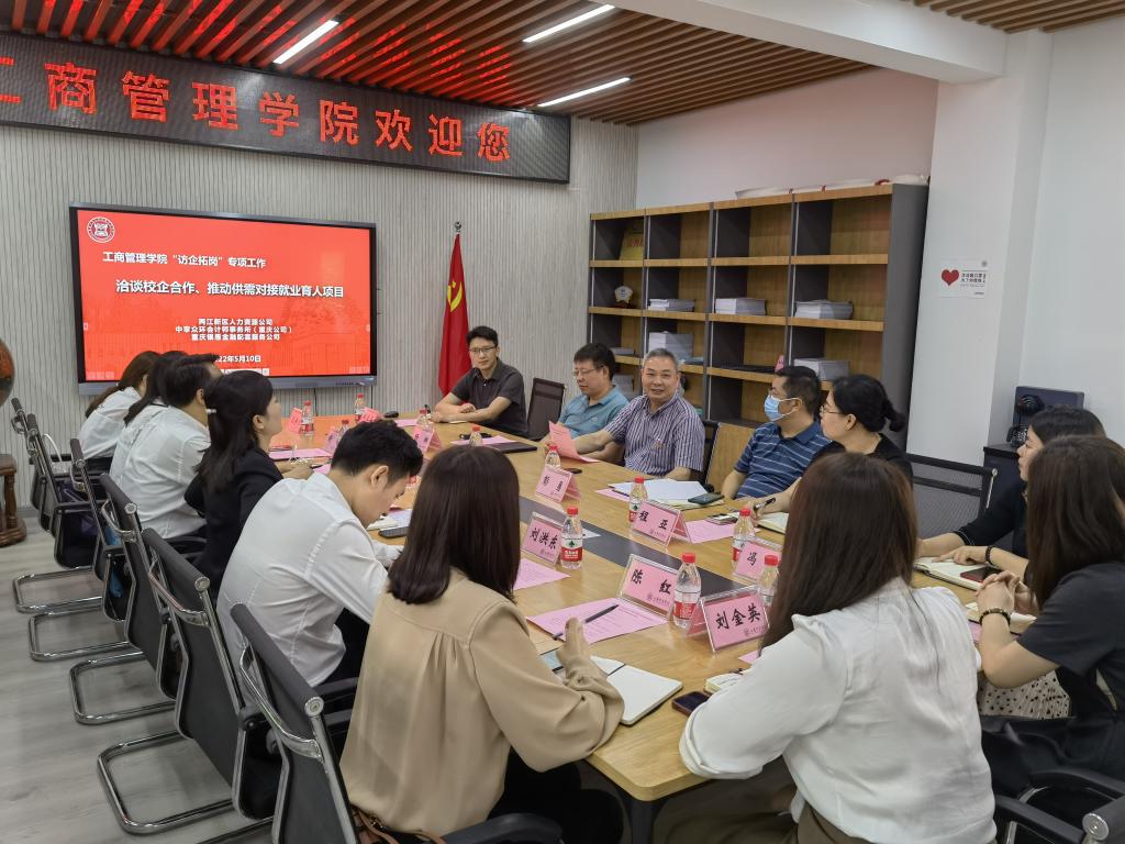 为进一步加强校企合作交流,促进学院人才培养和毕业生就业,2022年5月10日,在李国军副校长带领下,我院与两江新区人力资源公司、重庆银雁金融、中审众环等三家公司,在明德楼4010会议室,开展了校企合作洽谈,签署了校企合作协议。