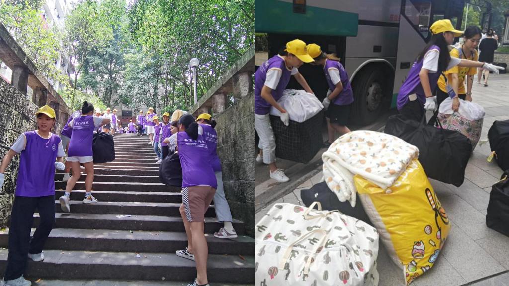 晨曦徐徐拉开了帷幕,又一个绚丽多彩的早晨,带着热情降临人间。由我院101名学生党员、预备党员、入党积极分子以及共青团员组成的志愿者服务队伍积极投入到2021级同学宿舍搬迁工作,本次宿舍搬迁从清晨5点30分开始,晚上20时结束,共用时14余时。全院学生共648人,分别搬入南区、北区、新北区共5个楼栋。此次搬迁跨楼域广、耗时长、学生数量多,无一不是对志愿者的巨大挑战,然而志愿者们不怕苦、不怕累、不怕难,充分展现了“奉献、友爱、进步、互助”的志愿精神,彰显了工商学子的满腔热忱与青春力量。