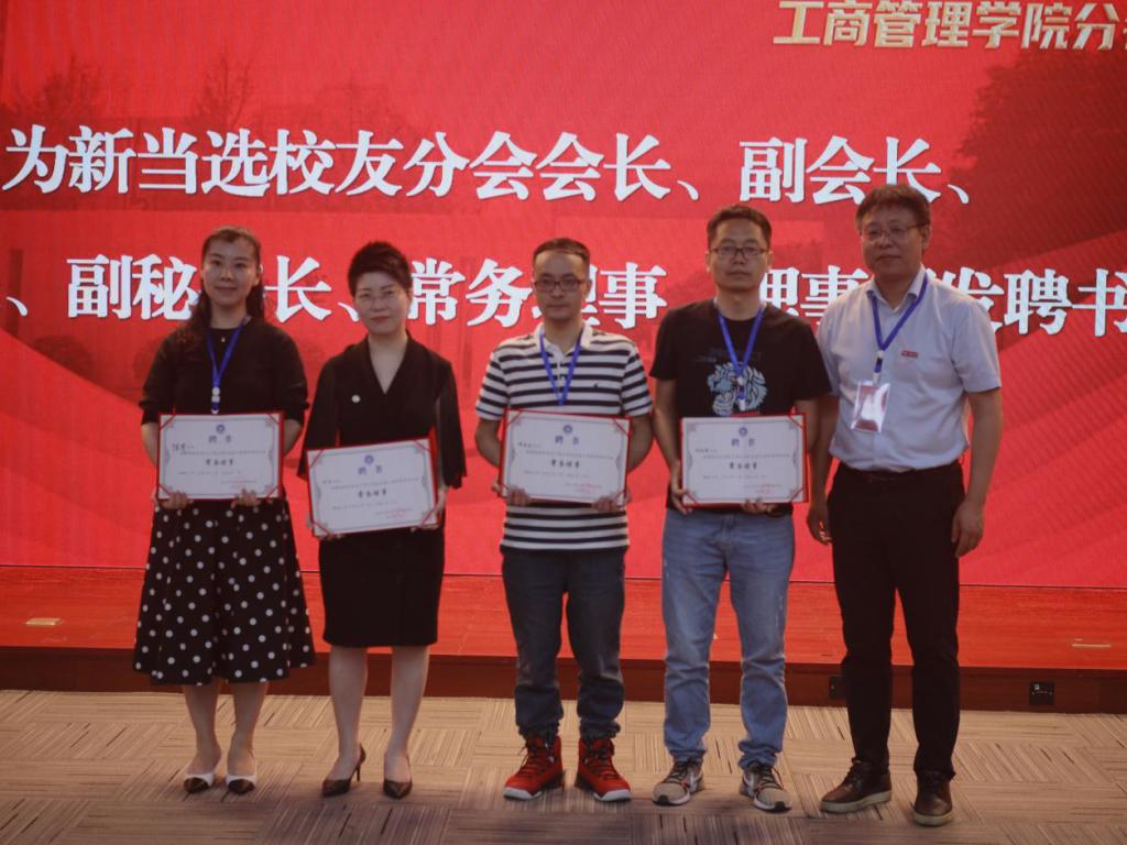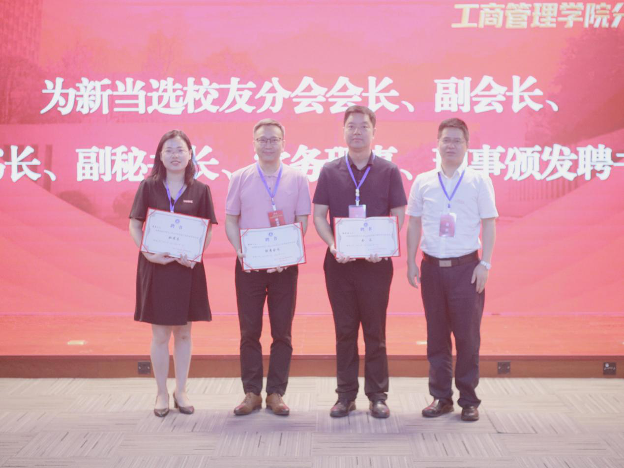 大会审议了分会第一届理事会成员名单,并选出了会长赖家国、联席会长张良、秘书长程亚,以及徐治学等10位副会长,刘榴等4位副秘书长。并为全体理事颁发了聘书;校友总会会长罗勇为分会授旗。